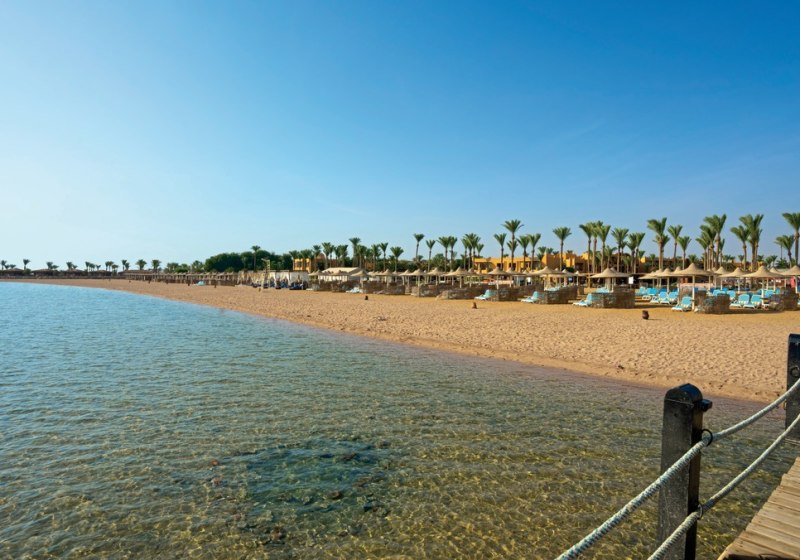 Ihr residiert an der Makadi Bay, direkt am Strand mit Hausriff, ideal für kurze Wege ins Wasser. Ein 380 Meter langer Steg erleichtert den Zugang. Rund 30 Kilometer südlich liegt der Flughafen Hurghada, nach Hurghada-Sekalla sind es etwa 40 Kilometer – damit bleibt Ihr angenehm angebunden, ohne Stadttrubel.