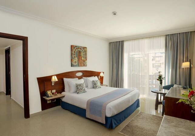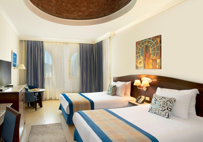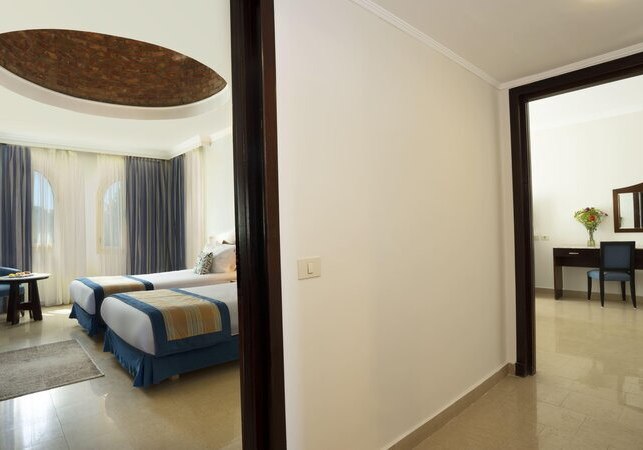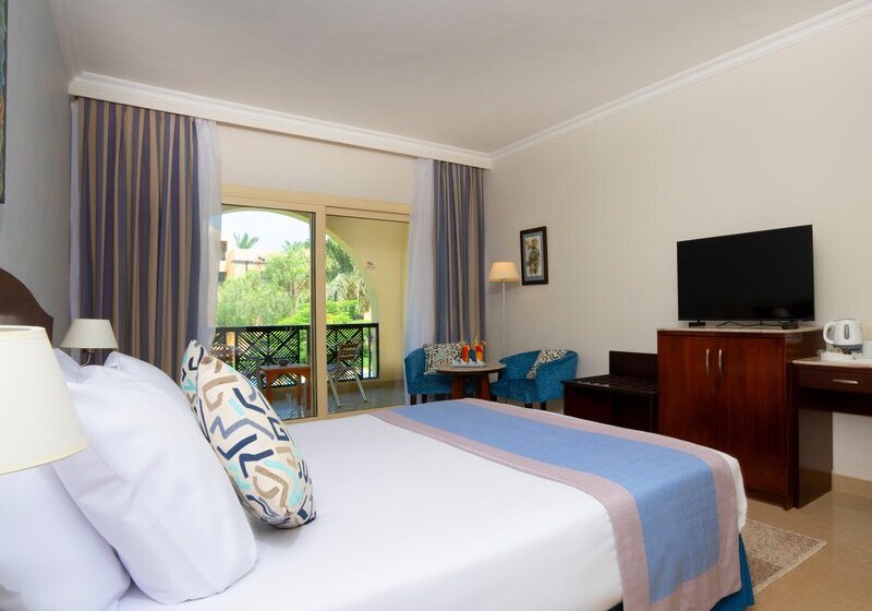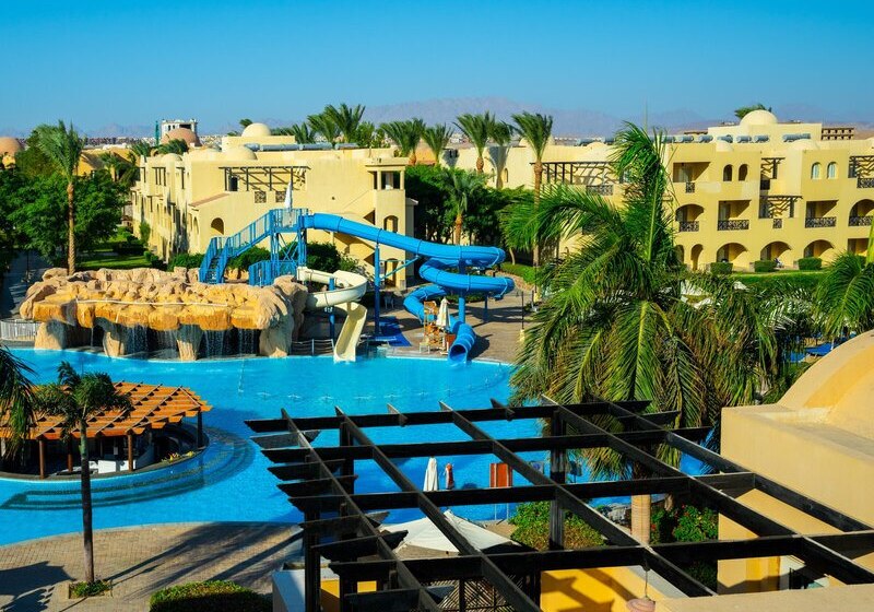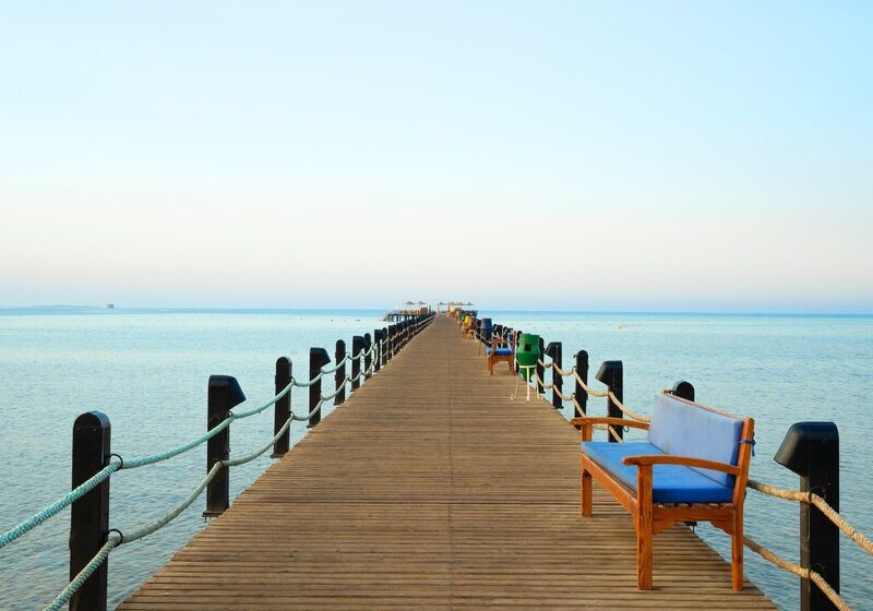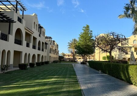 Familien findet Ihr in großzügigen Bereichen ebenso gut aufgehoben wie Paare, die Ruhe im Grünen schätzen. Für Strandtage bringt Euch der hoteleigene Shuttle zügig zur Makadi Bay. Das vorgelagerte Riff erreicht Ihr über einen langen Steg und taucht dort direkt in tieferes Wasser. Eine digitale 360°-Tour erleichtert Eure Planung vorab.
