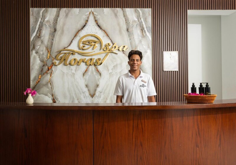 Die Anlage wurde 2023 renoviert und präsentiert sich weitläufig mit Gartenbereichen, Sonnenterrassen und mehreren Poolzonen. Zentral stehen Rezeption und Lobbybar mit kostenfreiem WLAN; darüber hinaus ist WLAN gegen Gebühr verfügbar. Shops, Souvenir-Store, Supermarkt und ein Friseur runden die Infrastruktur ab. Highlight: Renovierte Bereiche mit klaren Wegen und gutem Überblick.