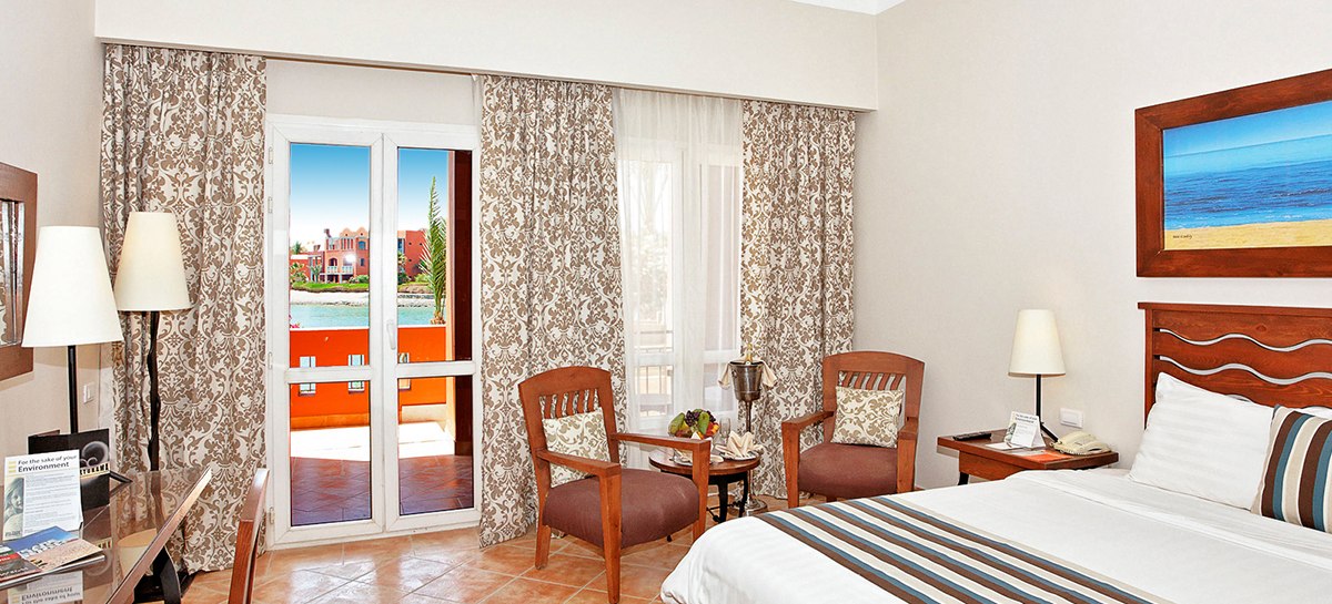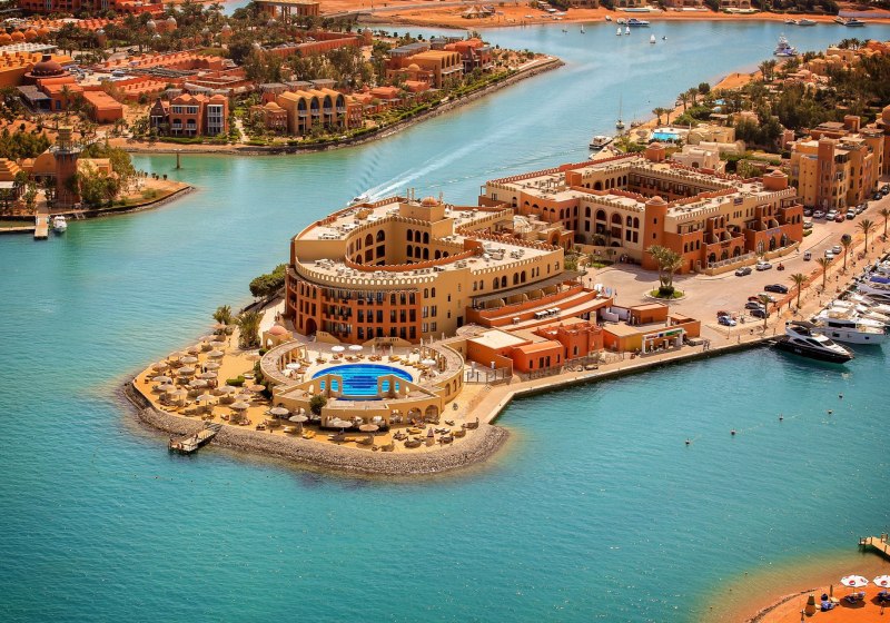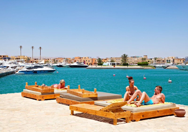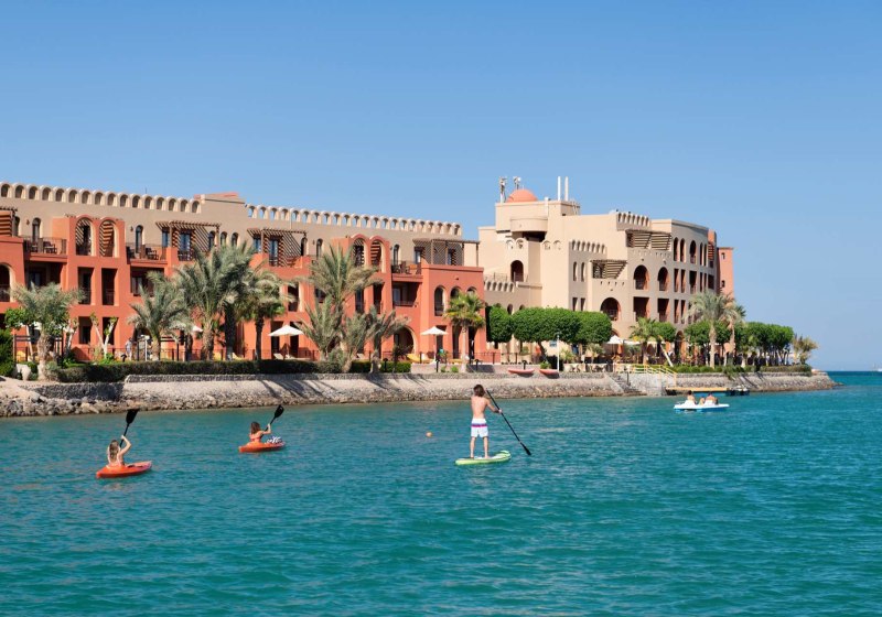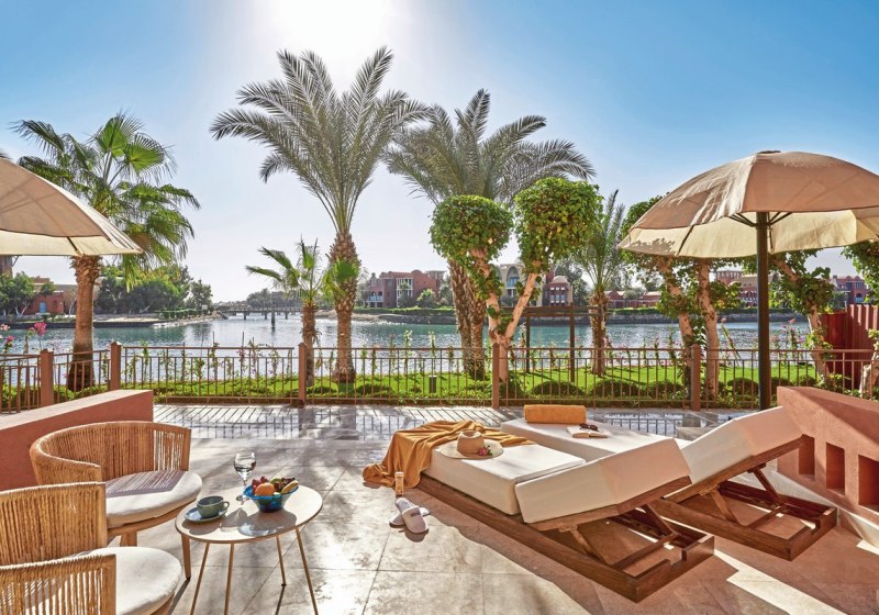 Ihr residiert in El Gouna direkt an der Abu Tig Marina. Der Strand auf Zeytouna Island liegt etwa 1,5 Kilometer entfernt und ist per Shuttleboot erreichbar. Zum Flughafen Hurghada sind es rund 40 Kilometer. Geschäfte und Restaurants erreicht Ihr zu Fuß, sodass spontane Abende entlang der Promenade leichtfallen.