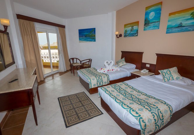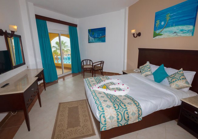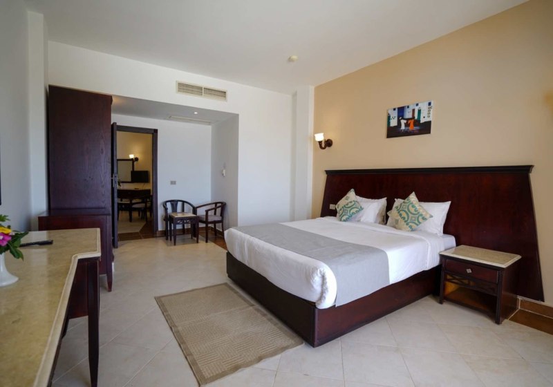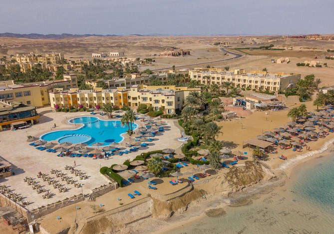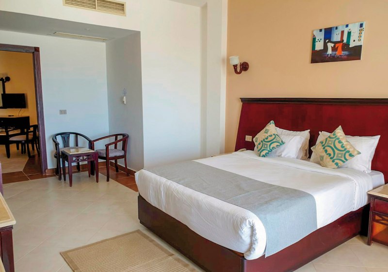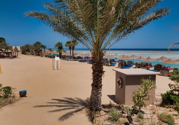 Ihr wohnt direkt am Privatstrand von Marsa Alam, rund 20 Kilometer südlich des Zentrums und etwa 45 Kilometer vom Flughafen. Ein Badesteg führt über das vorgelagerte Riff. Das Hausriff bietet kurze Wege zu Schnorchel- und Tauchspots, sodass Ihr Meererlebnisse unmittelbar vor der Tür findet.