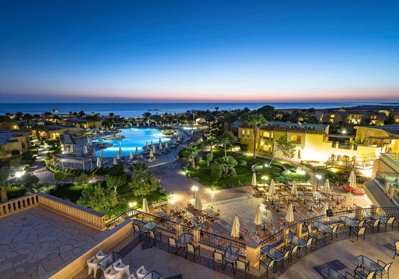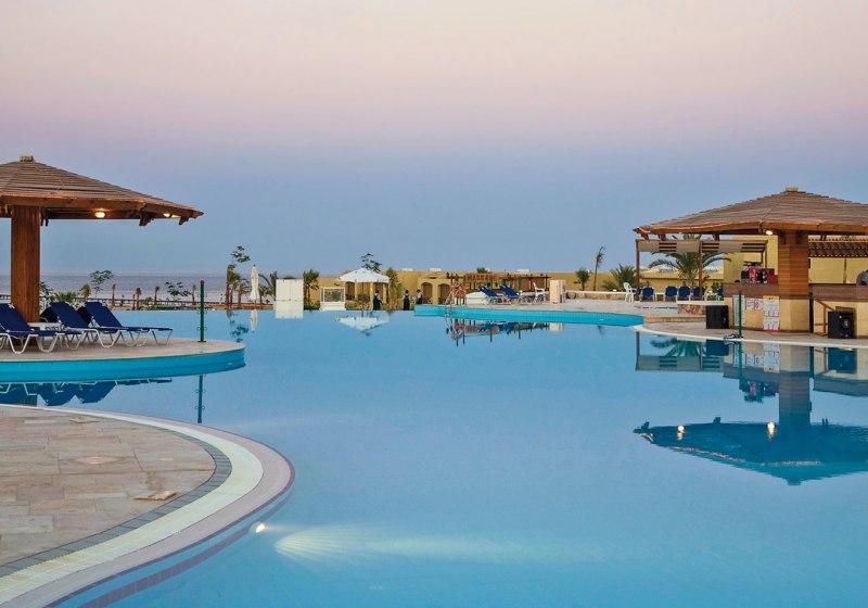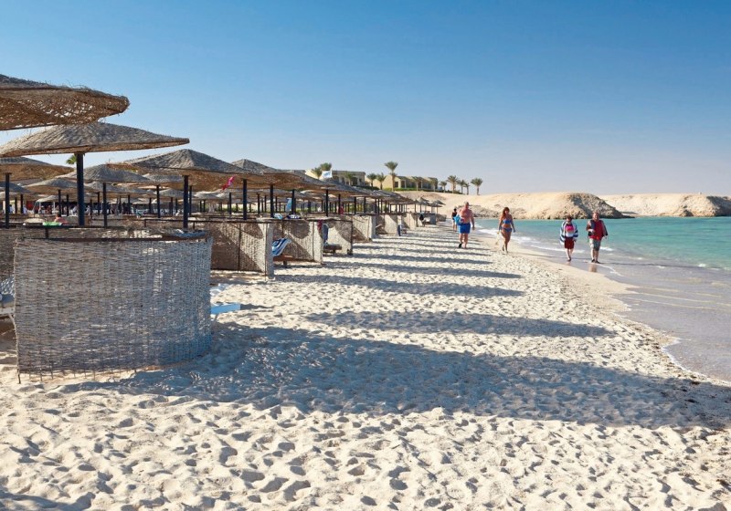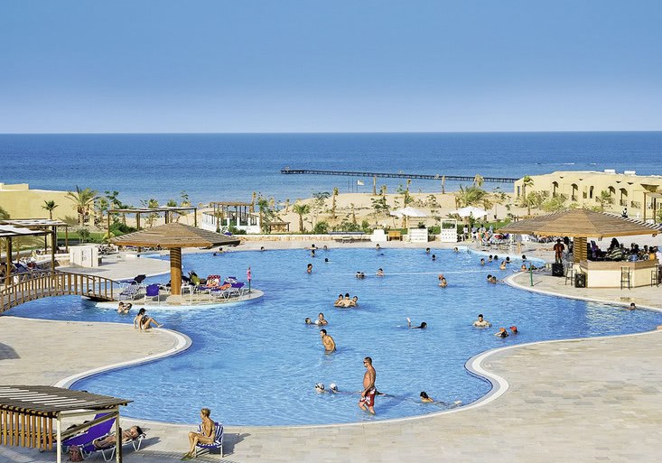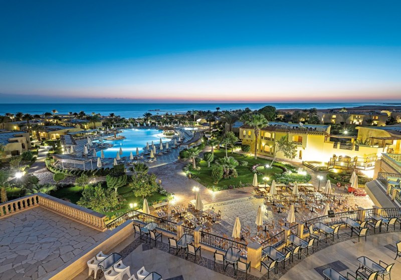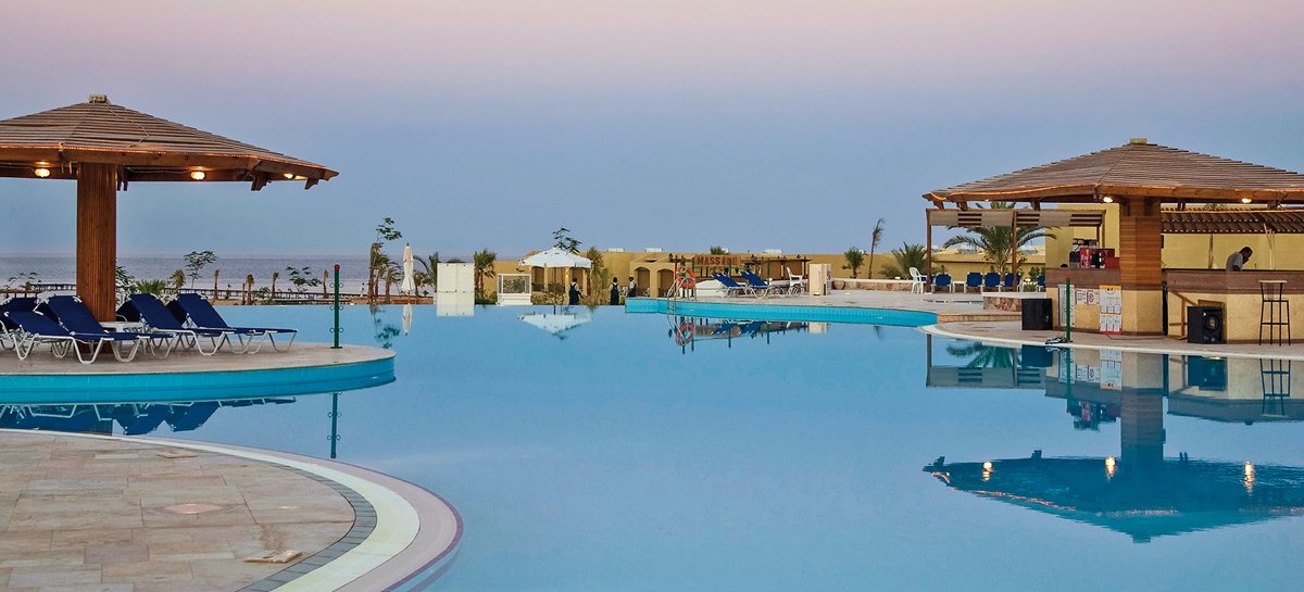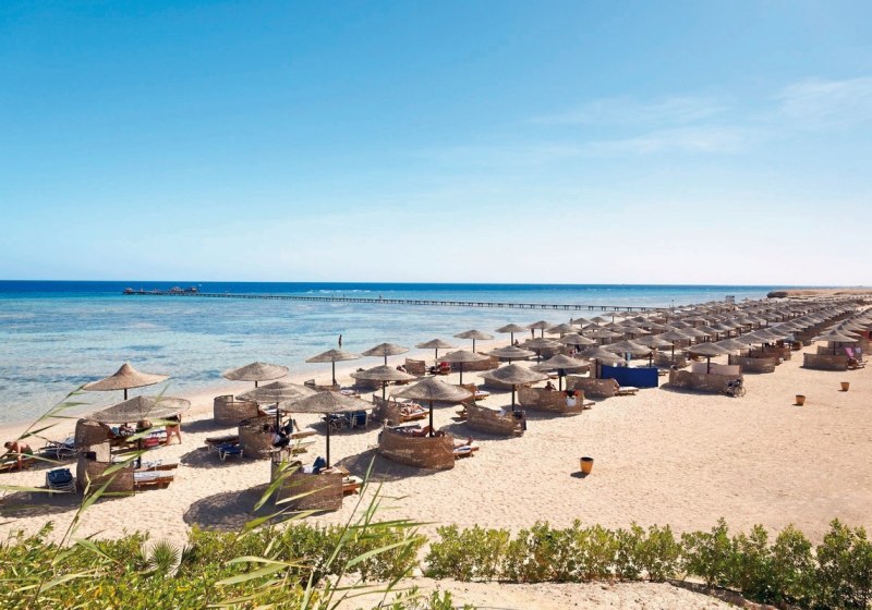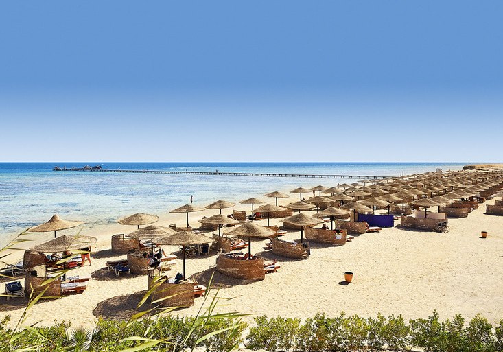 Das Resort liegt in Port Ghalib/Marsa Alam direkt an einem rund 1 km langen Sandstrand. Ein 350 m langer Steg führt Euch komfortabel über das Uferplateau hinaus – ideal, um das vorgelagerte Hausriff zu erreichen. Bis Port Ghalib sind es etwa 2 km, der Flughafen Marsa Alam liegt rund 10 km entfernt. Dadurch seid Ihr schnell angereist und habt zugleich eine ruhige Strandlage in der ersten Reihe. Vor Ort findet Ihr Strandbar, Liegen und Sonnenschirme, die Wege vom Zimmer an den Strand bleiben angenehm kurz. Die maritime Szenerie prägen klare Sichtachsen zum Meer und weitläufige Sonnenterrassen an den Pools. Wer Abwechslung sucht, nutzt den kurzen Abstecher in den Yachthafen von Port Ghalib, wer im Wasser bleiben möchte, schnorchelt am Hausriff oder nimmt den Steg für einen entspannten Einstieg ins Meer. Highlight: Direkte Strandlage mit Hausriff und Steg verbindet Nähe zum Wasser mit bequemer Zugänglichkeit.