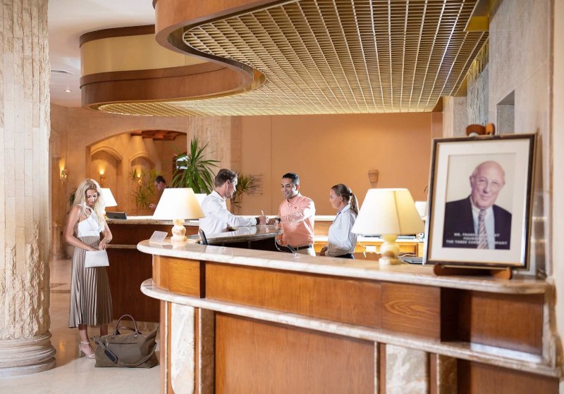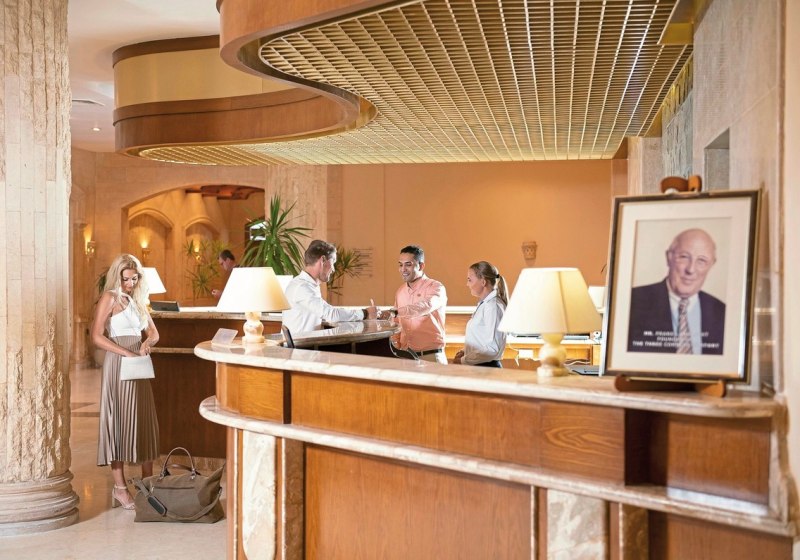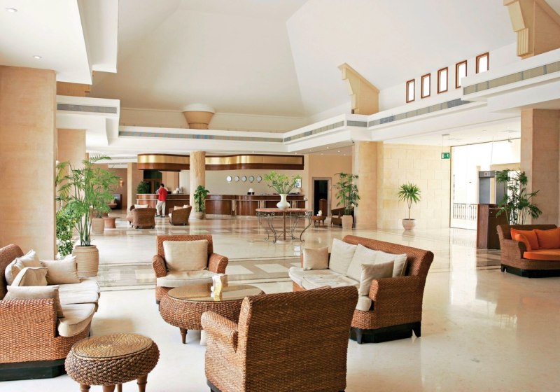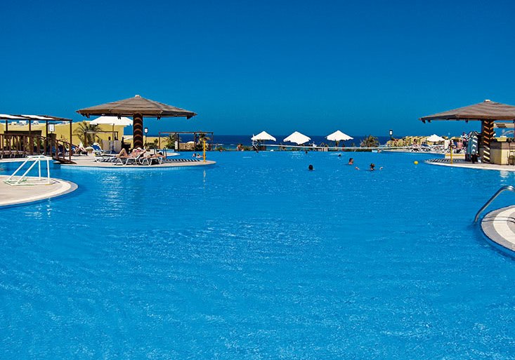 Die Anlage umfasst 495 Zimmer, verteilt auf Haupthaus sowie ein- und zweistöckige Nebengebäude. Im Zentrum stehen zwei große Pools, darunter der Dolphin Pool und ein Bereich mit separatem Kinderbecken. Liegen, Sonnenschirme und Badetücher liegen an Strand und Pool bereit. In der Lobby erwartet Euch die Rezeption mit großzügigem Empfangsbereich, das WLAN ist in der gesamten Anlage kostenfrei. Highlight: Weitläufige Poolzonen mit bequemer Strandanbindung und bereitliegenden Badetüchern.