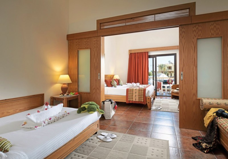 Am Meer liegt die Messlatte höher: Schnorcheln direkt am Hausriff oder Tauchen mit der Tauchschule „Extra Divers“ (gegen Gebühr) öffnet Euch die Unterwasserwelt des Roten Meeres. Wer Abwechslung an Land sucht, steigt aufs Fahrrad; Reiten ist in den Hoteldaten ebenfalls genannt. So bleibt Ihr zwischen Wasser, Strand und Anlage in Bewegung, ohne auf weite Transfers angewiesen zu sein. Highlight: Hausriff und Tauchcenter bringen Euch schnell und sicher ins Revier.