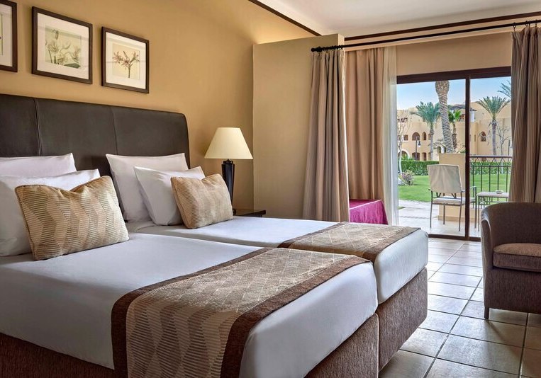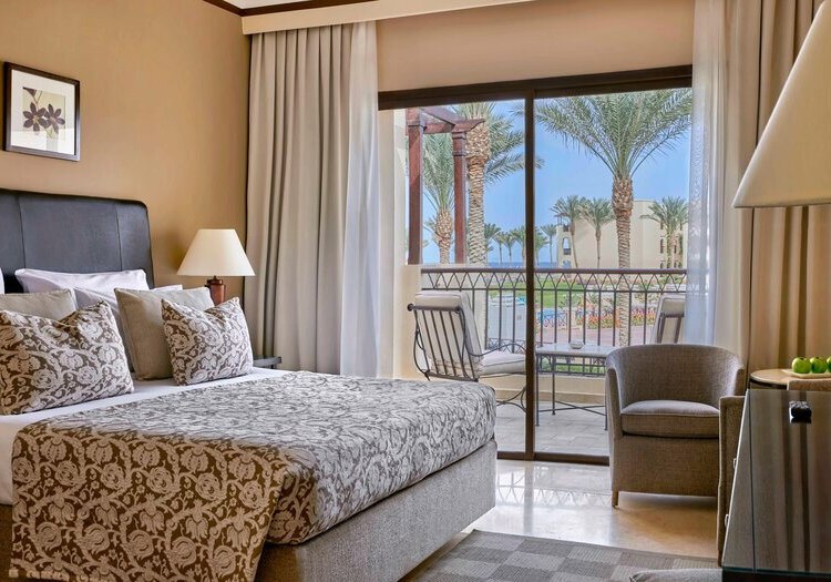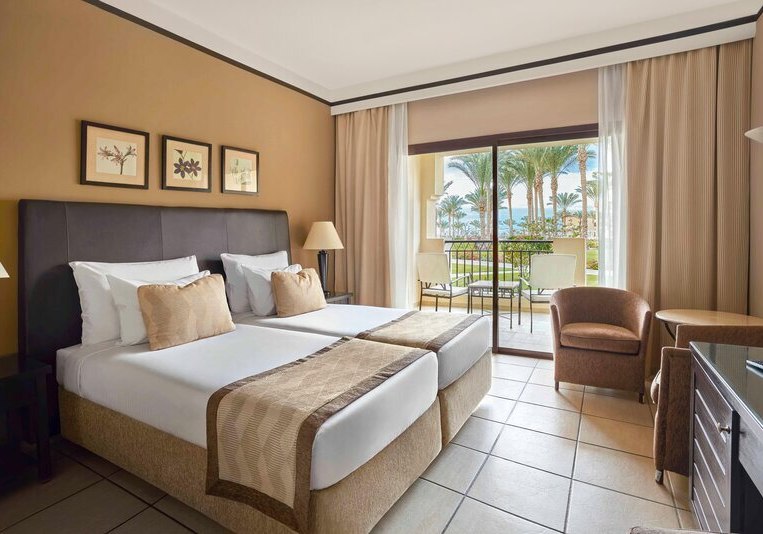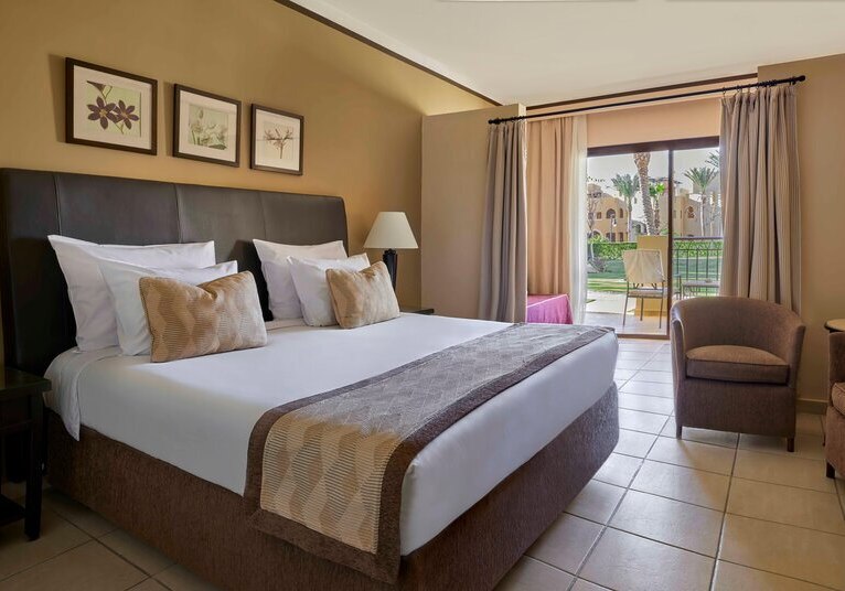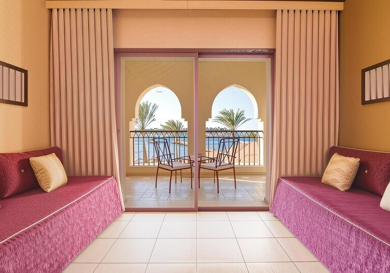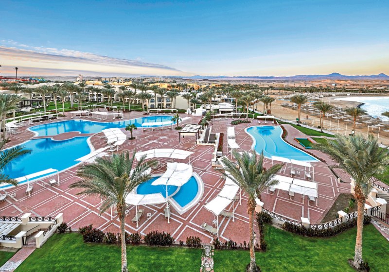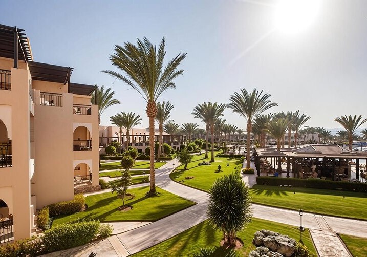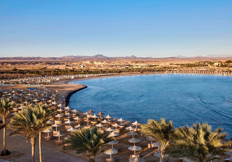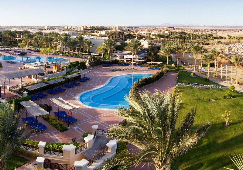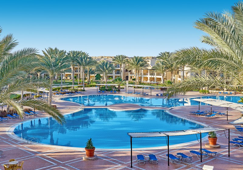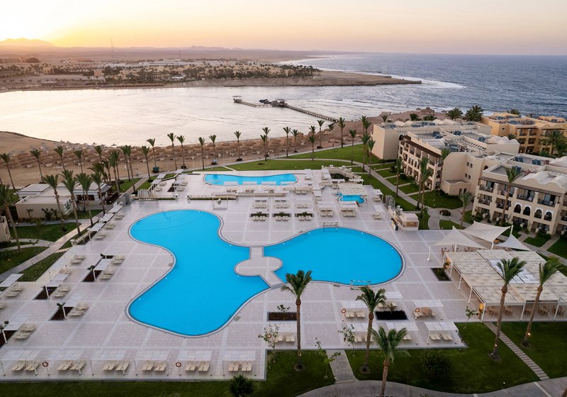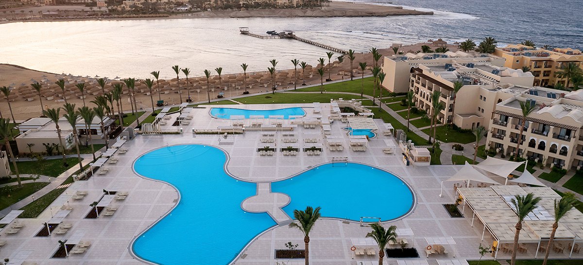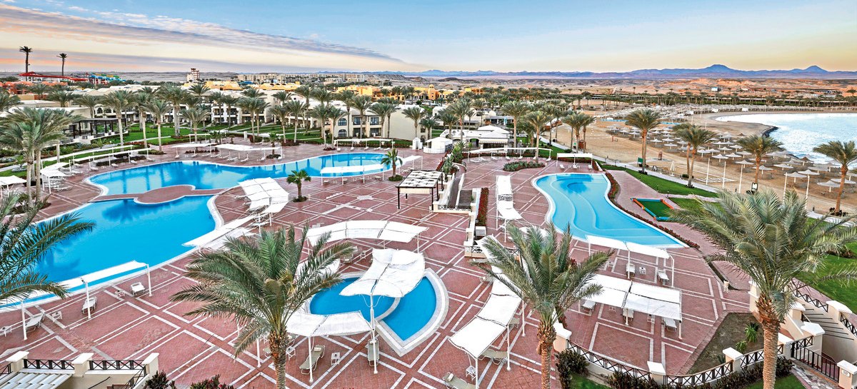 Das Resort liegt in Madinat Coraya nahe Marsa Alam, rund 8 km von Port Ghalib und etwa 8 km vom Flughafen entfernt. Der Zugang zum Meer erfolgt nach circa 150 m, ein Steg führt komfortabel über das Riff. Highlight: Kurze Wege zwischen Zimmern, Pools und Strand erleichtern Euren Tagesrhythmus.