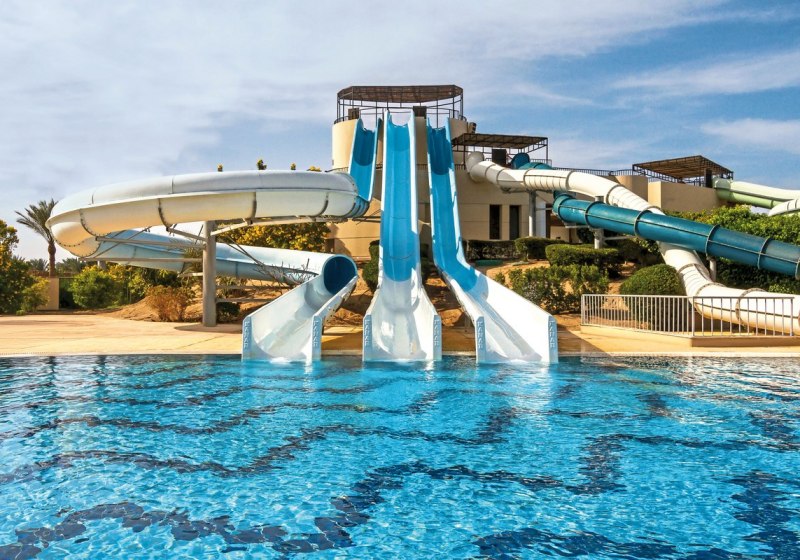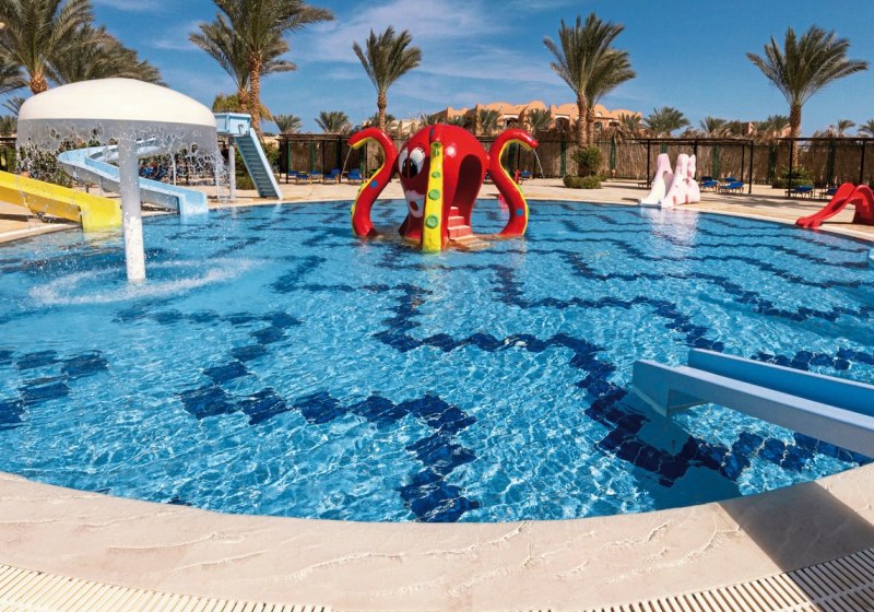 - Poollandschaft: Vier Außenpools plus separater Kinderpool, teils beheizt.