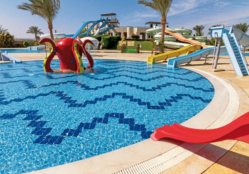 Damit deckt Ihr ein Spektrum von leichten Teamspielen bis zu ambitionierteren Einheiten ab – je nach Tagesform zwischen Strand, Pool und Court. Der Riffbereich am Strand liefert einen natürlichen Fokus auf die Küste; Badeschuhe werden empfohlen. Für Abwechslung ausserhalb des Meeres sorgt der nahe Aqua Coraya Wasserpark mit seinen 27 Rutschen.