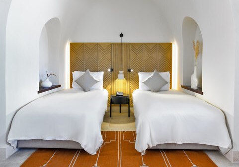 Ihr wohnt in Zimmern mit etwa 26 bis 40 Quadratmetern, jeweils mit Balkon oder Terrasse. Ausstattungen wie Klimaanlage, Dusche/WC, Föhn, Safe, Sat-TV, Telefon und Minibar sind gesetzt. Eine Kaffee-/Teezubereitung oder Espressomaschine gehört dazu. Betten stehen als Queensize oder Twin bereit. Highlight: Klare Ausstattung, angenehme Größen.