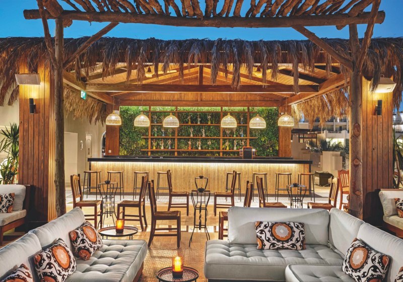 - Skybar-Blick: Dachterrasse mit Skybar als stimmungsvoller Treffpunkt über der Anlage.