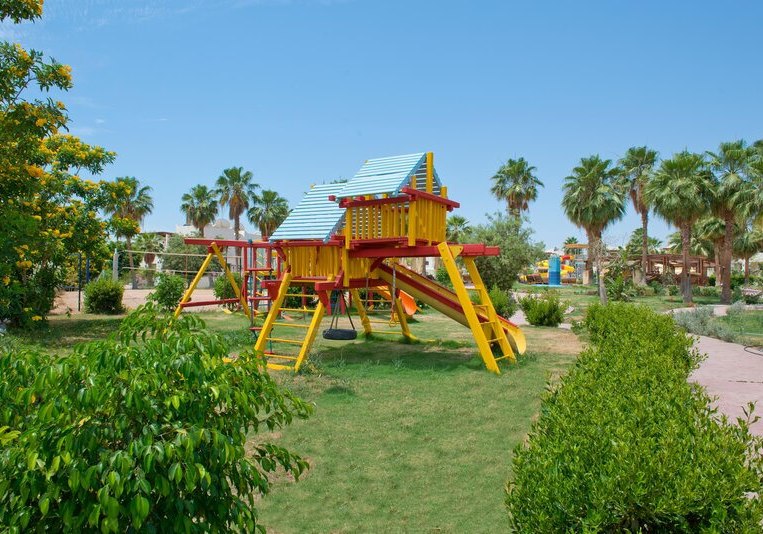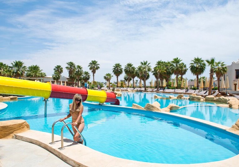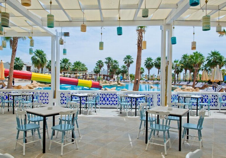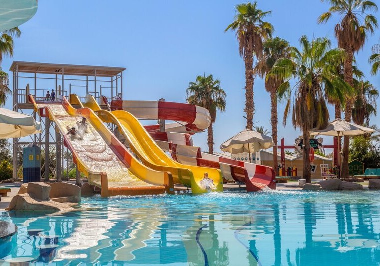 Die Infrastruktur ist umfassend: 24-Stunden-Rezeption, klimatisierte Innenbereiche, Lobby und Empfangsbereich für den schnellen Check-in. Drei Außenpools strukturieren die Anlage, Liegen und Schirme am Pool sowie am Strand sind vorgesehen, Badetücher liegen bereit. Ein Kinderbecken und eine Wasserrutsche machen den Familienalltag einfacher, während der Strandshuttle das Umziehen zwischen Pool und Meer unkompliziert hält.