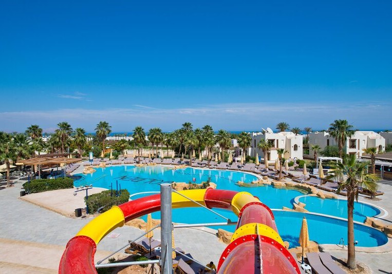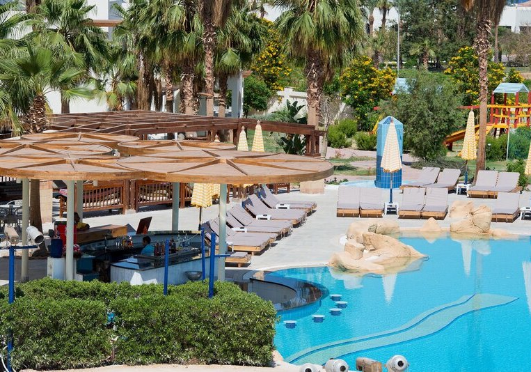 Amphoras Aqua verbindet in Sharm El Sheikh eine klare Ausrichtung auf Strandurlauber und Familien mit einer angenehmen, unkomplizierten Atmosphäre. Ihr wohnt in einer Anlage mit 250 Zimmern, die 2015 renoviert wurde und Euch mit drei Außenpools, separatem Kinderbecken und Wasserrutsche viel Raum für entspannte Tage bietet. Die Wege sind überschaubar, die Bereiche sinnvoll gegliedert: Poolzonen zum Abtauchen, eine lebendige Lobby für kurze Wege zu Bars und Services, dazu Gärten und Terrassen mit Sonne und Schatten. Ein Strandshuttle bringt Euch bequem zum rund 500 Meter entfernten Sandstrand.
