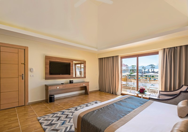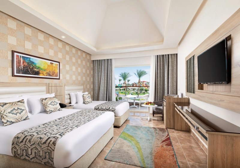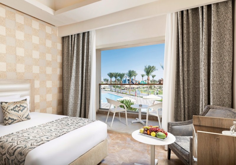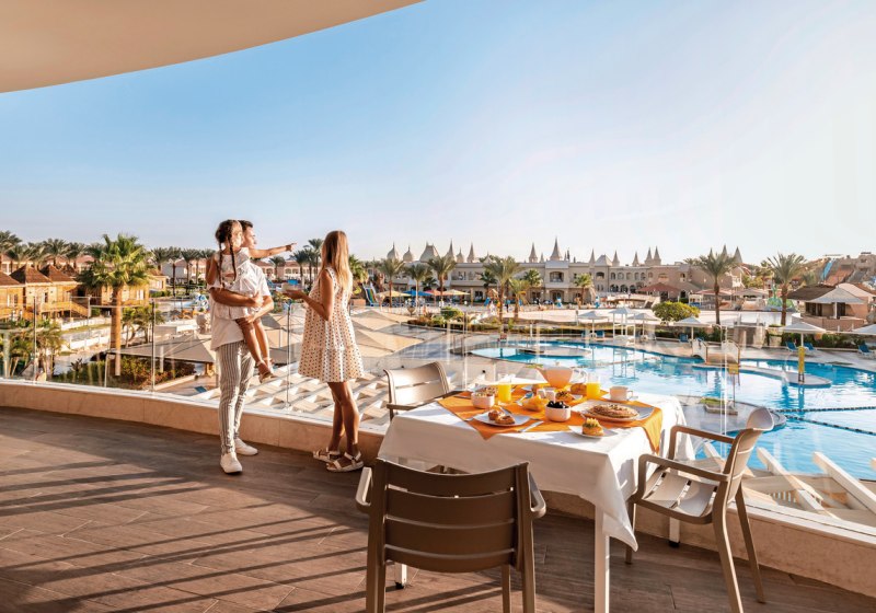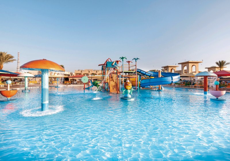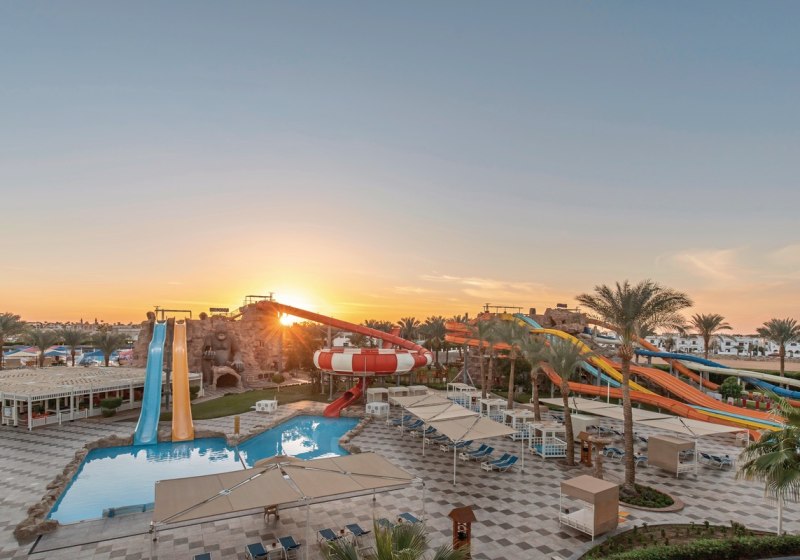 Im Mittelpunkt stehen 27 Swimmingpools, teils beheizbar, dazu Kinderbecken, Wasserspiele, Wellenbad, Lazy River und 64 Rutschen. Sonnenliegen, Schirme und Badetücher sind an Pool und Strand vorhanden. Ein Shuttlebus bringt Euch bequem zum Strand, wo Ihr den Bereich des Albatros Resort nutzt. Highlight: Dichte Servicekette und klar strukturierte Wege zwischen Zimmern, Pools, Promenade und Strand.