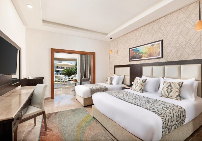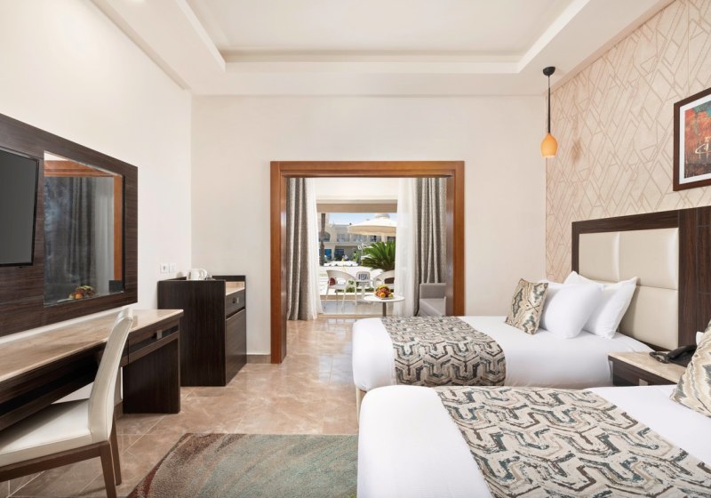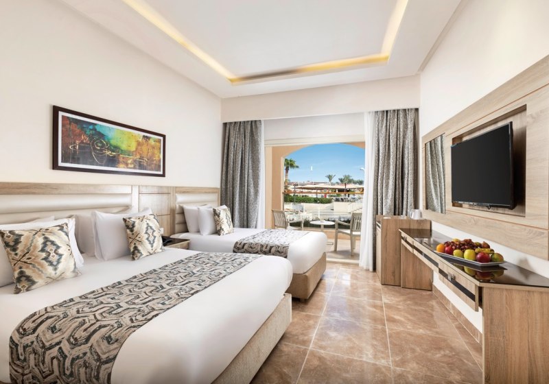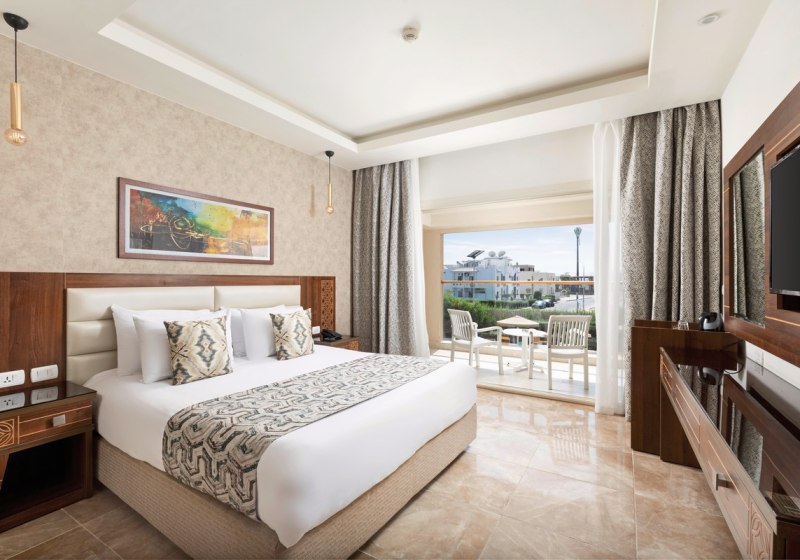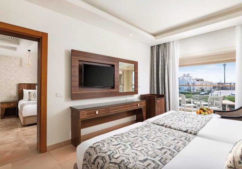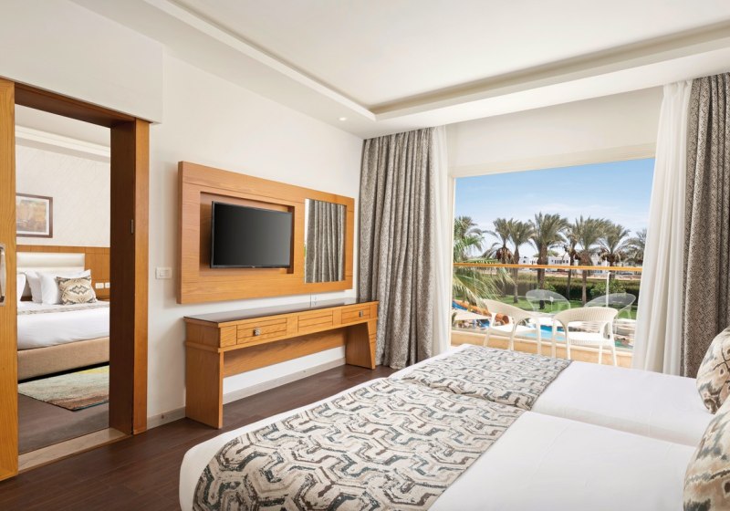 Ihr residiert in Ras Om El Seid, Sharm el Sheikh, direkt am großflächigen Aquapark. Der Strand liegt wenige Fahrminuten entfernt und ist per Shuttlebus angebunden; die Distanz beträgt etwa 3.000 Meter. Am Strand nutzt Ihr den Bereich des Albatros Resort, inklusive Beachbar sowie Liegen und Schirmen. Die Lage verbindet Badevergnügen im Park mit klassischem Strandtag, ohne lange Wege.