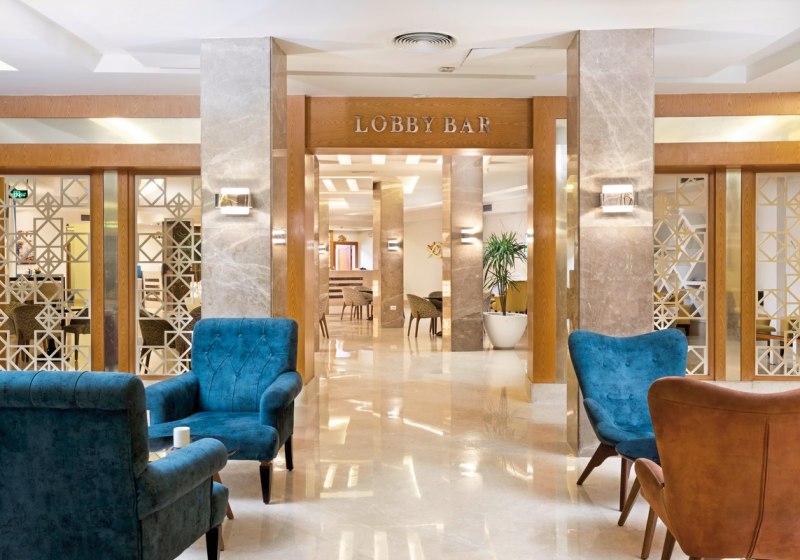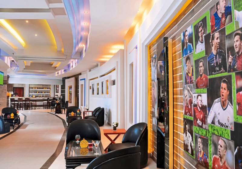 Die Infrastruktur ist großzügig: 520 Zimmer verteilen sich auf zwei Wohngebäude, verbunden über Wege, Höfe und die 450 Meter lange Promenade mit Shopping-Arkade. Ihr findet Friseur, Geldautomat, verschiedene Bars, Lobby- und Poolbar, Cafés, Souvenirshops und Servicepunkte wie Tour-Desk und Arztservice. WLAN steht in den öffentlichen Bereichen zur Verfügung.