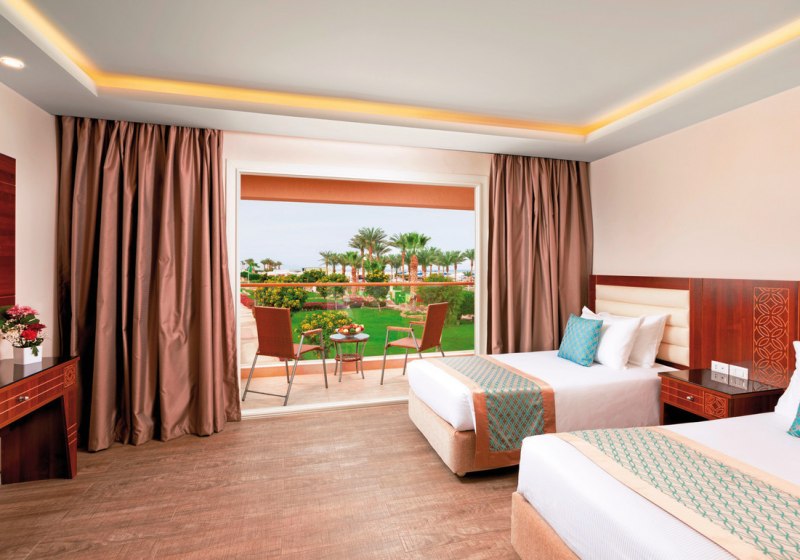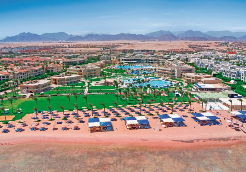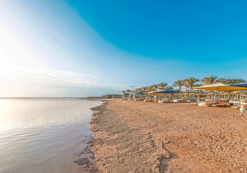Ihr urlaubt an der Nabq Bay in Sharm el Sheikh, direkt am hoteleigenen Sandstrand. Zur Naama Bay sind es etwa 25 Kilometer, den Flughafen Sharm El Sheikh erreicht Ihr nach rund 13 Kilometern. Die Strandlage prägt den Aufenthalt: kurze Wege zwischen Zimmer, Poolbereichen und Meer sowie bequemer Zugang zu Strandliegen und Schirmen.