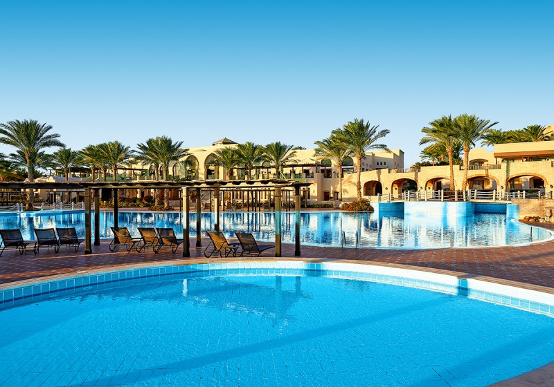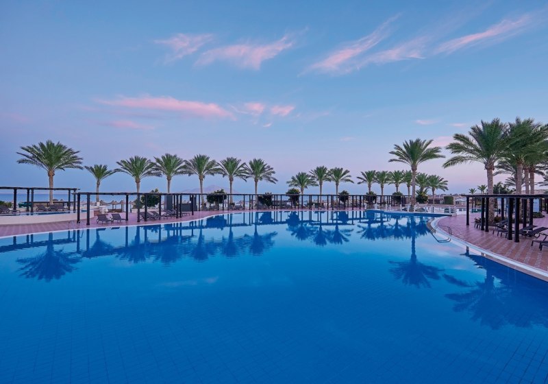 Die Infrastruktur ist umfangreich und klar strukturiert: Empfangshalle mit Rezeption, Shoppingarea, Lobbybar und verschiedene Shops schaffen kurze Wege. Zwei Außenpools – einer davon im Winter beheizbar – sowie ein beheizbares Kinderbecken geben Euch Planungssicherheit zu jeder Jahreszeit. Am Strand und am Pool stehen Liegen, Sonnenschirme und Badetücher bereit.