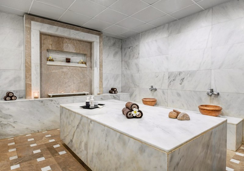- Relax & Wärme: Sauna, Dampfbad und Jacuzzi ergänzen das Spa-Angebot.