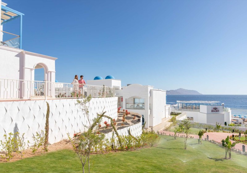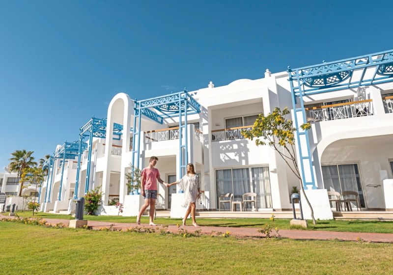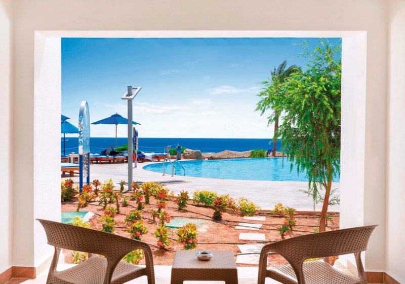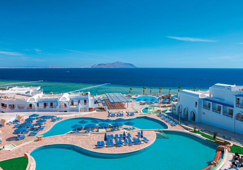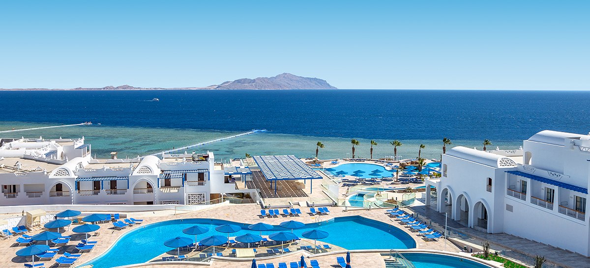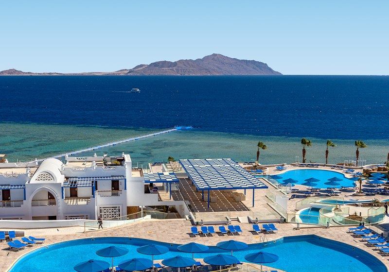 Ihr residiert in Sharm El Sheikh an der Montazah Ras Nasrani Bay – direkt am privaten Korallen- und Sandstrand mit schwimmendem Steg und Panoramablick zur Insel Tiran. Zur Naama Bay sind es rund 10 Kilometer, zum Flughafen etwa 8 Kilometer, das nächste Einkaufszentrum liegt circa 2 Kilometer entfernt. Der Ras Nasrani Beach ist etwa 300 Meter erreicht.