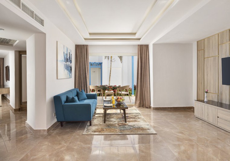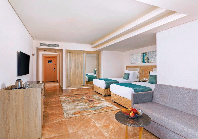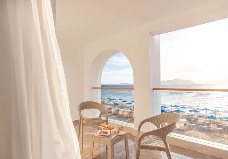 Familienzimmer und Optionen mit Meerblick stehen zur Auswahl; auch getrennte Schlafzimmer und Schlafsofa sind vorgesehen. Das Haus führt Junior-Suiten und Suiten, sodass Ihr Raum und Aufteilung passend wählen könnt. Details wie Holz-/Parkettböden und Balkonmöbel erhöhen den Wohnkomfort. Highlight: Zimmer mit Meerblick verbinden private Rückzugszeit und Tiran-Panorama.