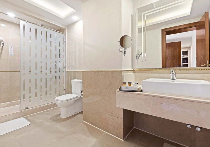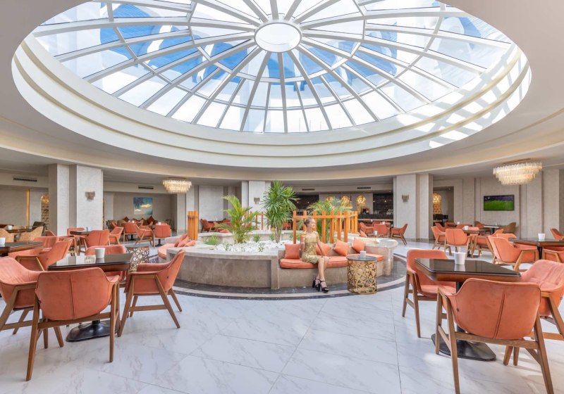 Innen erwartet Euch eine dichte Infrastruktur: kostenfreies WLAN in öffentlichen Bereichen, Businesscenter, Bankettsaal und Theatersaal, dazu Shops von Juwelier bis Souvenir und eine Apotheke. Friseur, Wäscherei- und Trockenreinigung, Concierge und 24-Stunden-Service runden die Serviceschicht ab. Highlight: Wasserpark mit 14 Rutschen setzt ein klares Freizeitzeichen.