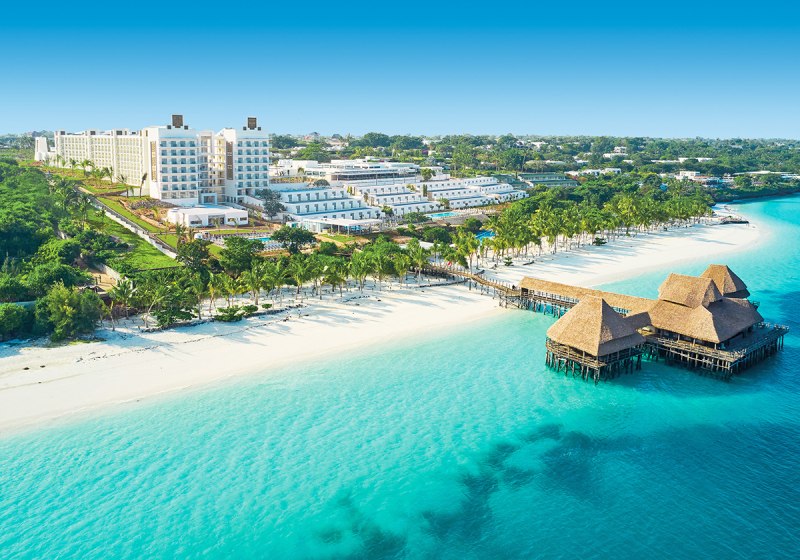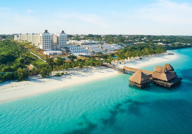 Im Hotel Riu Jambo wohnt Ihr direkt am Strand von Nungwi auf Sansibar. Die Anlage wurde 2022 eröffnet und wirkt entsprechend frisch strukturiert. Vier Außenpools und ein separater Kinderpool verteilen die Tagesmomente zwischen Wasser und Sand. Mit All-Inclusive, Shows und Live-Musik fühlt sich Euer Tagesrhythmus leicht und verlässlich an.