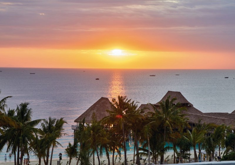 Ihr wohnt direkt am Strand von Nungwi an der Nordwestküste Sansibars. Restaurants und Bars erreicht Ihr bequem zu Fuß; das Umfeld wirkt entspannt und klar ausgerichtet auf Strandtage. Nach Stone Town und zum Flughafen rechnet Ihr mit etwa 50 Minuten Fahrzeit, was Ausflüge gut planbar macht.