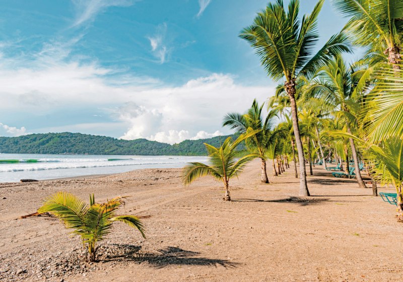 Ihr wohnt an der Playa Tambor auf der Halbinsel Nicoya, direkt am langen Sand- und Kieselstrand. Das Ortszentrum von Tambor liegt etwa 2 Kilometer entfernt, Montezuma erreicht Ihr in rund 18 Kilometern. Zum Flughafen San José sind es etwa 165 Kilometer. Die tropische Gartenanlage begleitet Euch auf dem Weg zum Strand und zu den Pools, sodass Ihr kurze Wege zwischen Badepause, Mahlzeiten und Abendprogramm habt. Liegen und Tücher am Strand erleichtern den Tagesrhythmus, während die Lage eingebettet zwischen Meer und Grün für ein geradliniges Strandgefühl sorgt. Wer Abwechslung sucht, findet mit den nahegelegenen Orten Orientierung, bleibt aber mit der Direktlage am Wasser stets dicht am Geschehen.