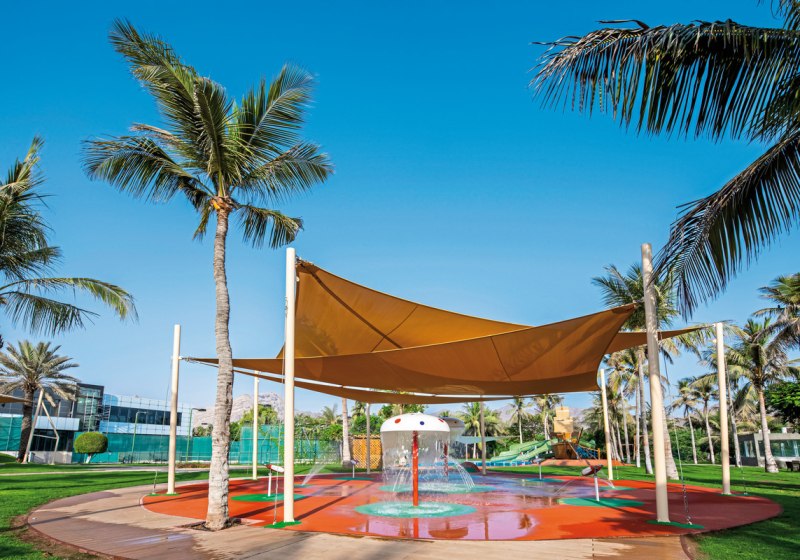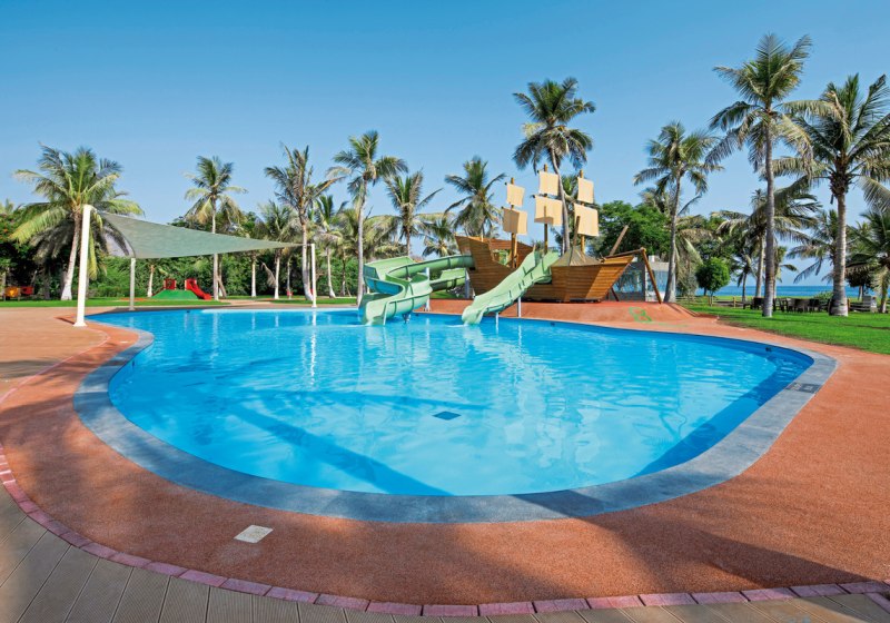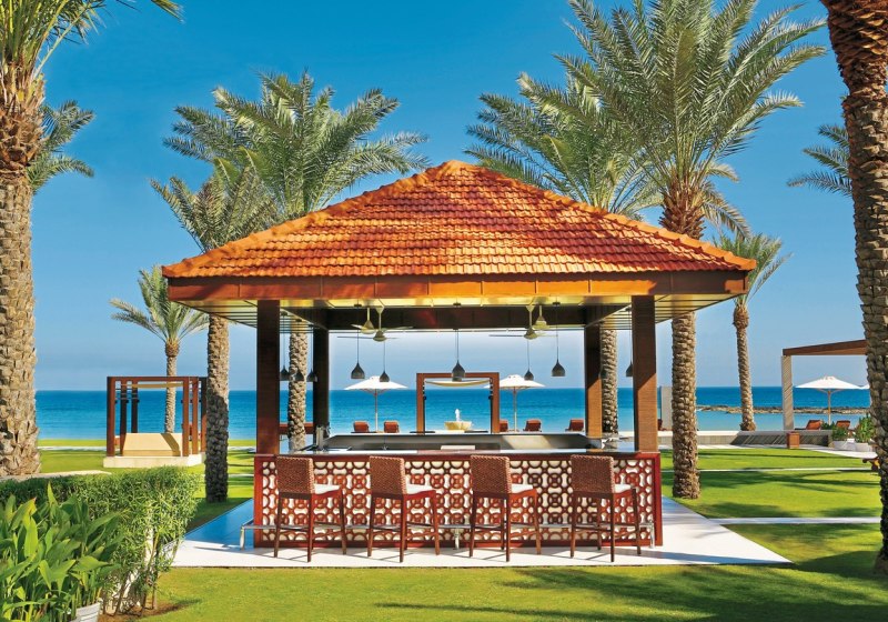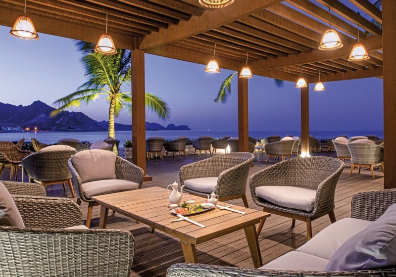 Das Resort liegt an einem privaten, einen Kilometer langen Sandstrand zwischen Hadschar-Gebirge und Golf von Oman. Die geschützte Lage vermittelt Weite am Wasser und klare Sichtachsen zu den Bergen. So beginnt Euer Tag direkt an der Küste, mit kurzen Wegen vom Zimmer an den Strand.