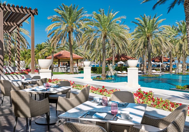 Al Bustan Palace - A Ritz-Carlton Hotel verbindet Palastarchitektur mit privatem Strand und klarer Servicekultur. Pools, Spa und strukturierte Familienbereiche schaffen verlässliche Abläufe, während fünf Restaurants und Bars den Tag kulinarisch ordnen – vom Frühstück bis zur späten Teestunde im Atrium.
