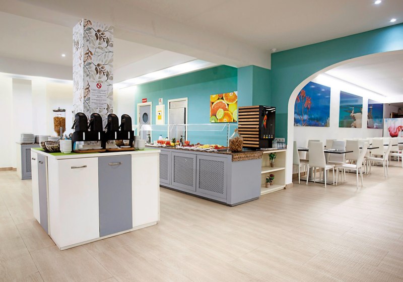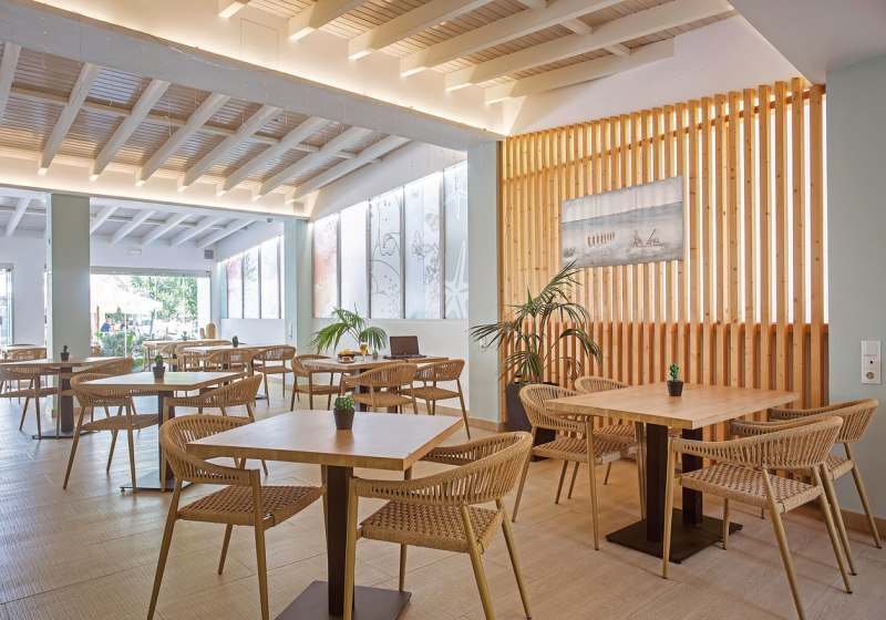 Ihr startet mit Frühstück: Im Buffetrestaurant werden von 08:30 bis 10:30 Uhr Speisen serviert (Kapazität etwa 100 Plätze). Zusätzlich gibt es ein À‑la‑carte‑Restaurant, ein Café für die kleine Pause zwischendurch sowie eine Bar mit alkoholfreien und alkoholischen Getränken – passend für den Absacker nach dem Strand.