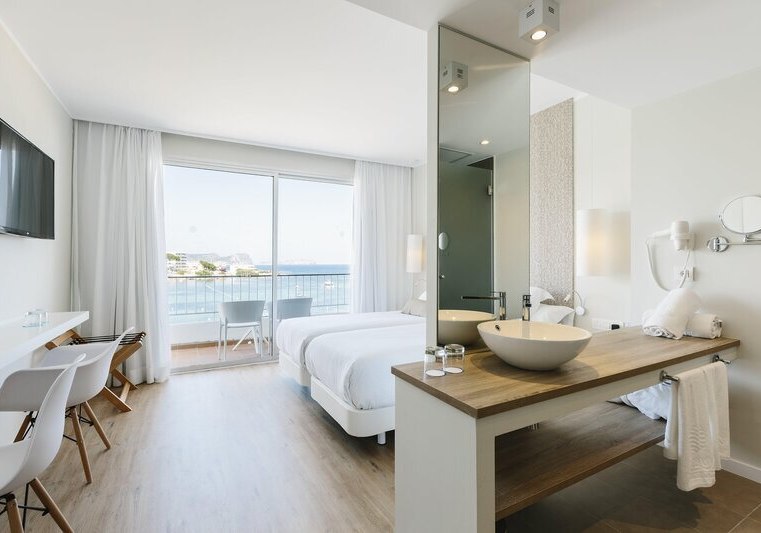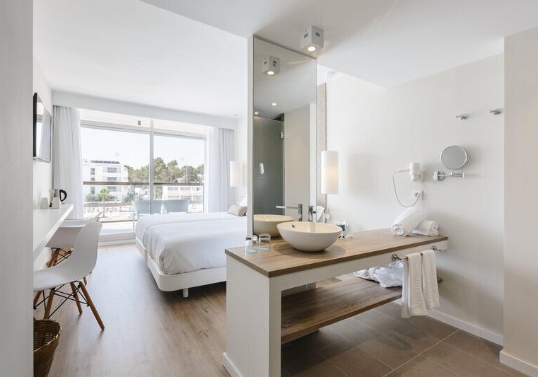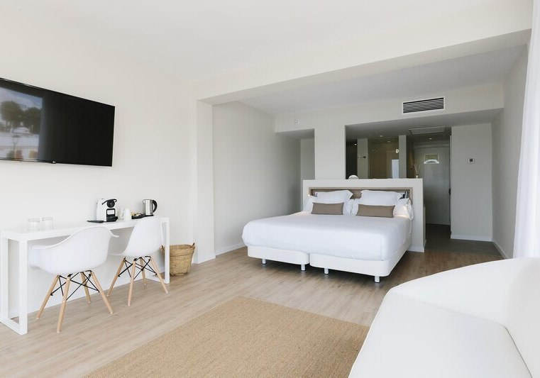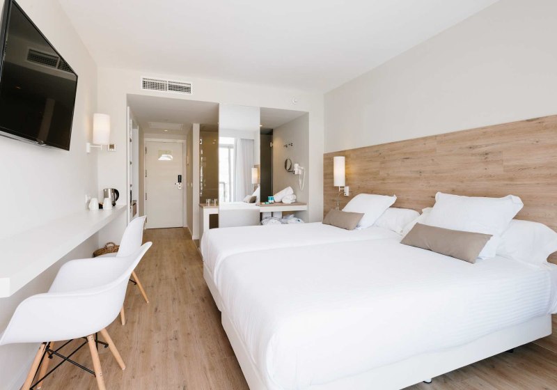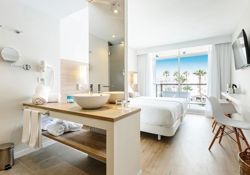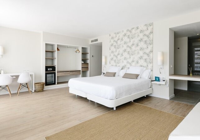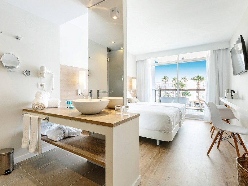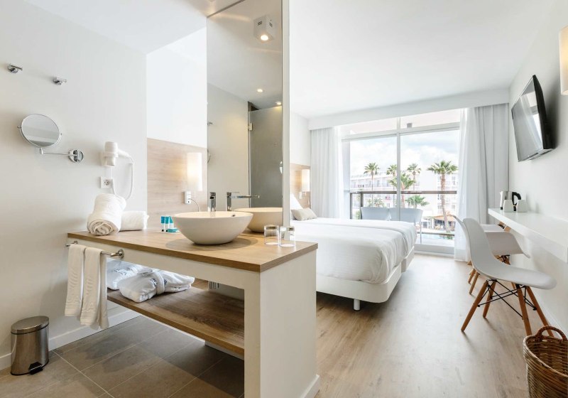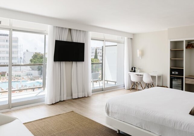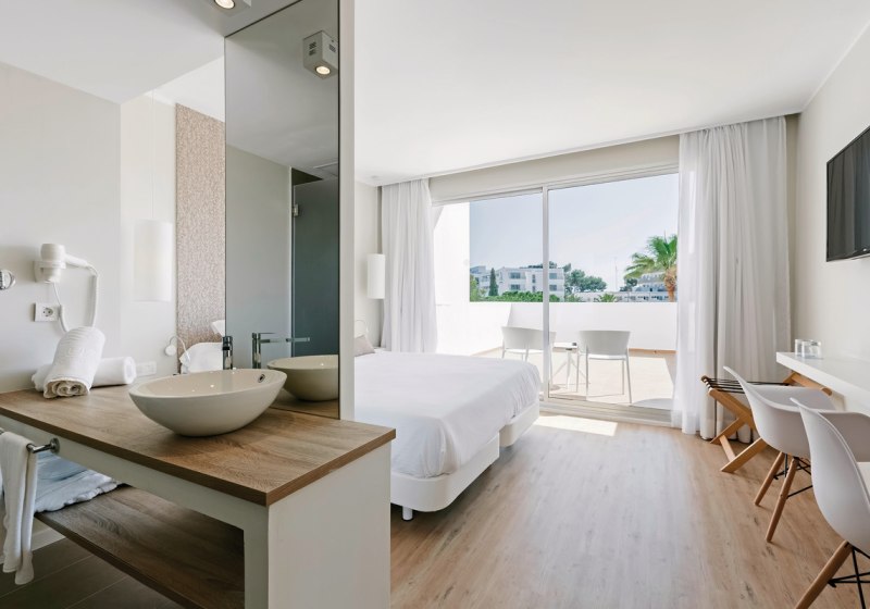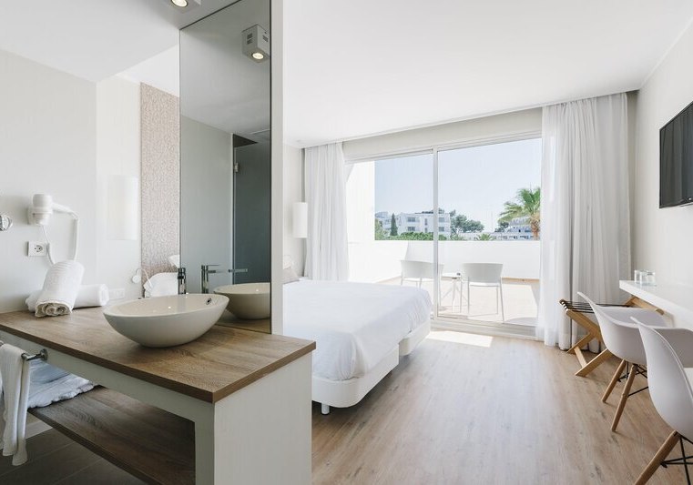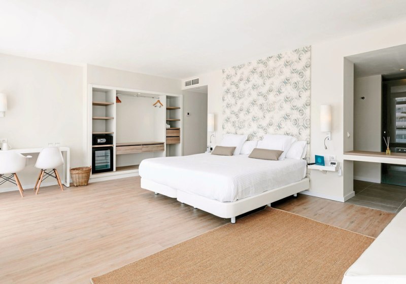 Die Zimmer im AluaSoul Ibiza sind klar strukturiert und alltagstauglich eingerichtet. TV mit 43 Zoll, Klimaanlage, Safe, Telefon und kostenloses WLAN gehören zum Standard, ebenso Bad mit Dusche, Föhn, Kosmetikartikeln und Vergrößerungsspiegel. Parkettboden sorgt für eine saubere Anmutung. Draußen wartet eine möblierte Terrasse oder ein Balkon mit Außenmöbeln.