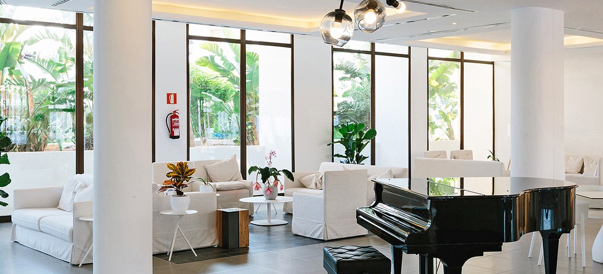 Im AluaSoul Ibiza wohnt Ihr direkt am Strand von Es Canar – mit kurzen Wegen, klarer Ausrichtung und entspanntem Rhythmus. Das Haus ist Adults Only ab 16 Jahren, ideal, wenn Ihr Zweisamkeit und fokussierte Ruhe schätzt. Modernisierte Bereiche (Renovierung 2017) geben dem Hotel eine aufgeräumte Note, die sich von der Lobby bis zu den Terrassen zieht. Der große Außenpool bildet das Herzstück, dazu gesellt sich ein exklusiver Pool für Gäste der Superior- und Junior-Suiten.