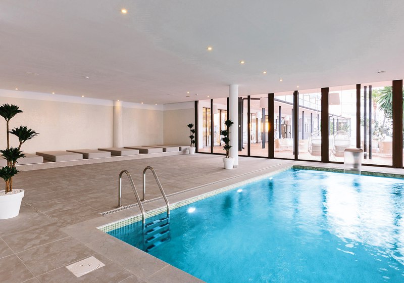 Im Wellnessbereich des AluaSoul Ibiza entspannt Ihr wetterunabhängig: Der Innenpool ist beheizt, dazu stehen Sauna und Dampfbad bereit. Wer gezielt abschalten möchte, wählt Massagen in den dafür vorgesehenen Kabinen. Der Bereich ist kompakt organisiert und ergänzt die sonnigen Stunden am Strand sinnvoll.