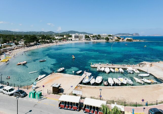 Direkt am Strand von Es Canar verbindet Ihr im AluaSoul Ibiza Meernähe mit kurzer Anbindung: Der feinsandige Abschnitt liegt nur 50 Meter entfernt, die zentrale Lage erreicht Ihr nach rund 500 Metern. Für Ausflüge bietet sich Santa Eulalia an, etwa 5 Kilometer entfernt – ein guter Rahmen für Hafenflair, Promenaden und Einkehrstopps. Durch die Strandnähe lebt Ihr tagsüber im Rhythmus der Bucht und verlegt den Schwerpunkt je nach Laune zwischen Wasser, Sonnenterrasse und Spaziergängen an der Küste. Gleichzeitig bleibt der Transfer zu Restaurants und Bars im Ort überschaubar. Wer mobil sein will, nutzt den Mietwagen- oder Fahrradverleih direkt im Hotel. So arrangiert Ihr die Ferien flexibel zwischen Badepausen, kurzen Wegen und Abstechern entlang der Ostküste, ohne Zeit mit langen Distanzen zu verlieren. Der Meerblick im Umfeld rahmt viele Momente schlicht und wirkungsvoll.