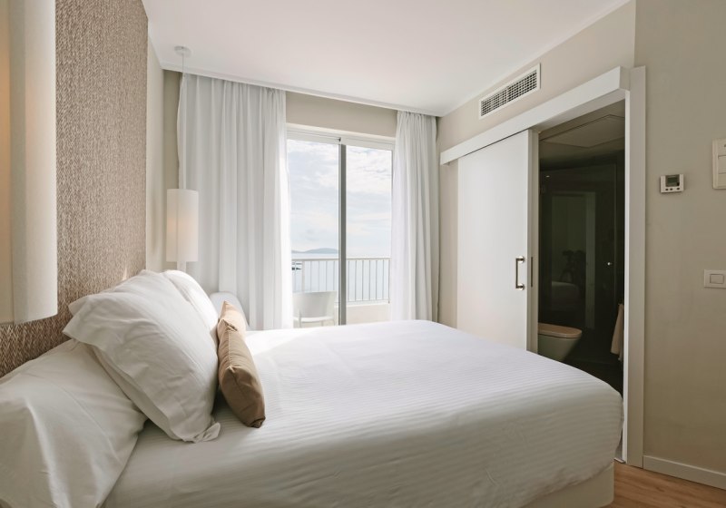 Mit rund 22 m² bieten die Zimmer einen fokussierten Grundriss. Kaffee- und Teezubereiter, Espressomaschine, Wasserkocher und Mineralwasser erleichtern den Start in den Tag. Bademantel, Hausschuhe und Kopfkissenauswahl erhöhen den Komfort. Je nach Lage blickt Ihr zum Pool oder auf das Meer. Wer mehr Exklusivität plant, wählt Kategorien mit Zugang zum separaten Suiten-Pool.
