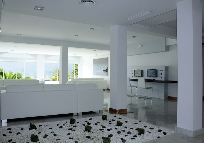 Das Haus wirkt übersichtlich und gut strukturiert: Lobby mit Rezeption, zwei Lifte und kostenlose WLAN-Abdeckung im gesamten Hotel. Herzstück ist der Außenbereich mit Swimmingpool und der Sonnenterrasse direkt am Meer. Hier wählt Ihr zwischen Sonnenliegen und Schatten, mit den Wellen als konstanter Kulisse.