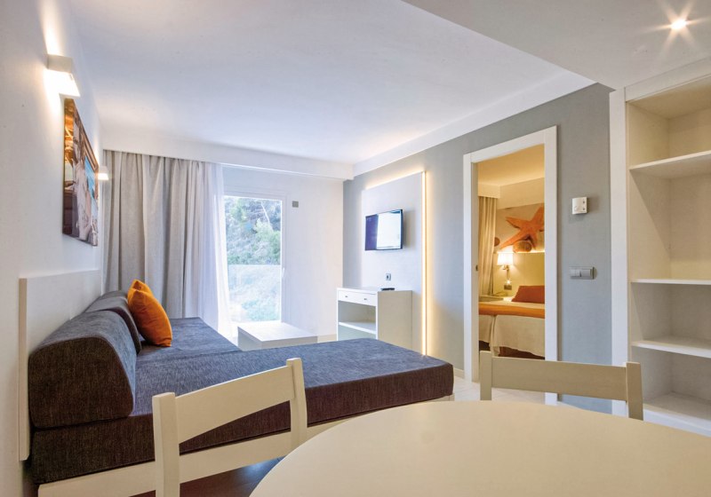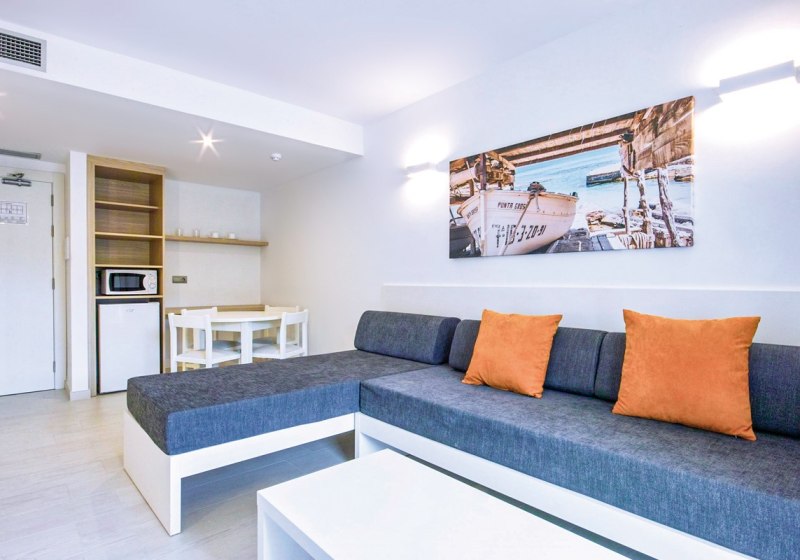 Im Balansat Resort wohnt Ihr direkt am flach abfallenden Sandstrand von Puerto de San Miguel. Die Anlage wirkt wie ein lebendiger Ferienort im Kleinen: zwei Außenpools strukturieren den Tag, während WLAN in der gesamten Anlage Eure Planung leicht macht. Familien steuern den Kinderpool mit Rutschen und Wasserspielen an, Ruhesuchende ziehen sich an den separaten Erwachsenenpool zurück. Das Zusammenspiel aus Strandnähe, kurzen Wegen und klaren Strukturen sorgt für einen unkomplizierten Ablauf. Highlight: Direkte Strandlage mit sanftem Einstieg, ideal für entspannte Badetage.
