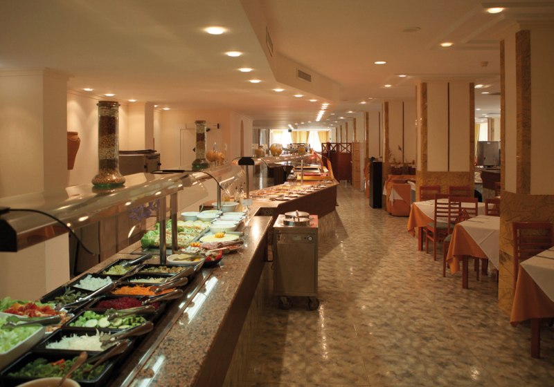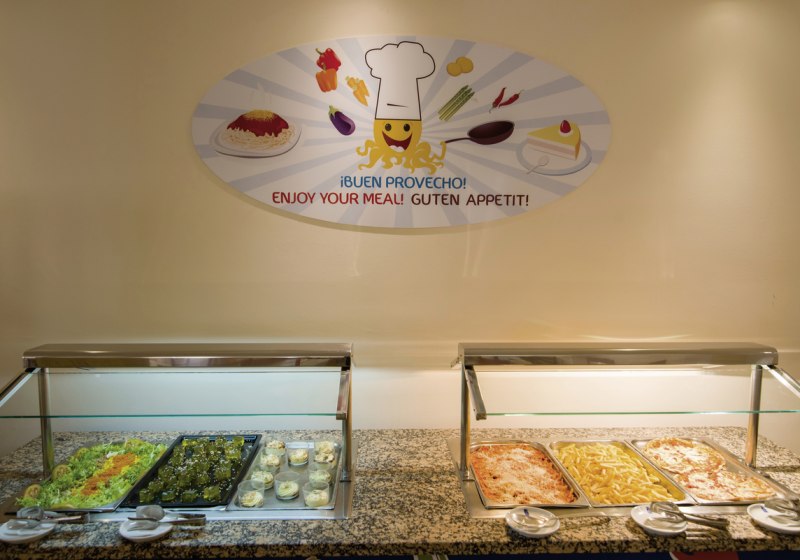 Im klimatisierten Buffet-Restaurant esst Ihr flexibel und unprätentiös. Live-Kochen sorgt punktuell für Frische, Snacks ergänzen zwischen den Mahlzeiten. Je nach gebuchter Verpflegung reichen die Optionen von Frühstück bis All Inclusive mit inkludierten alkoholfreien und alkoholischen Getränken.