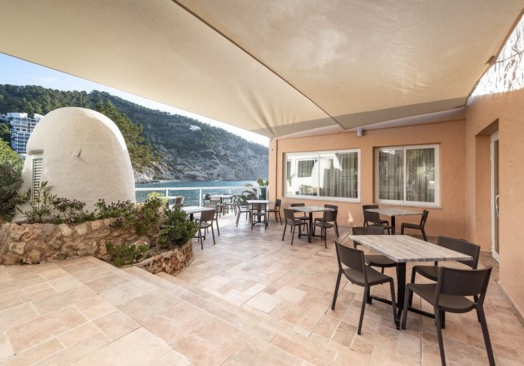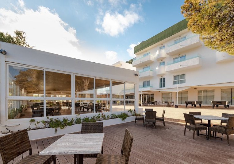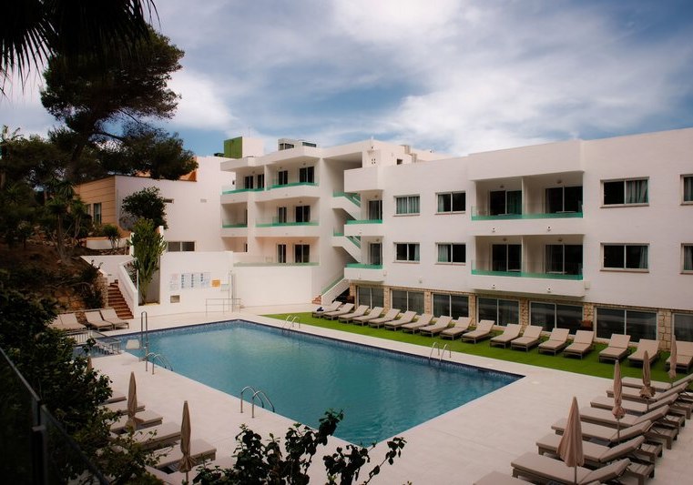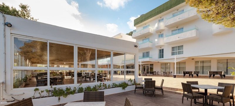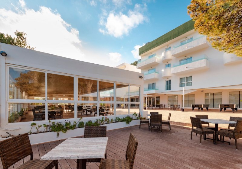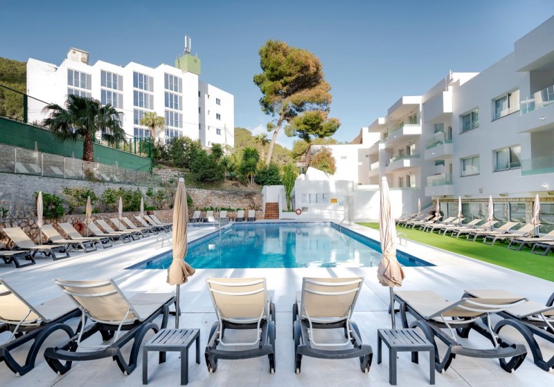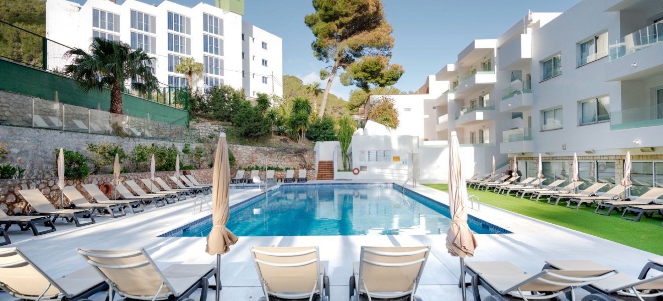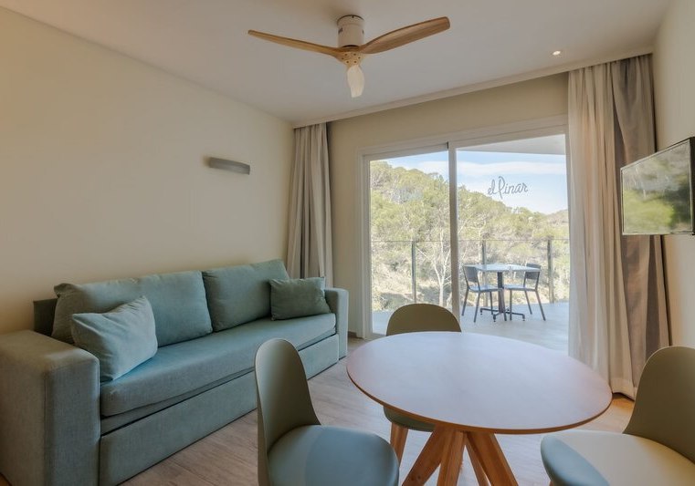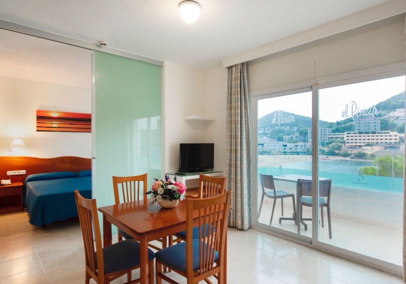 El Pinar empfängt Euch in Cala Llonga auf Ibiza, direkt am Meer gelegen und mit kurzer Distanz zum feinsandigen Strand. Ihr wohnt in einem entspannten Apartmenthotel mit Studios und Appartements, verteilt auf Haupt- und Nebengebäude. Der Stil ist unkompliziert, die Wege sind kurz, und die Gemeinschaftsbereiche wirken klar strukturiert. Highlight: Strandnähe und Apartmentkomfort für flexible Tage am Mittelmeer.