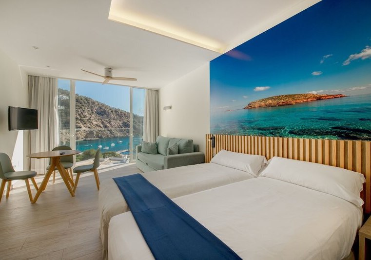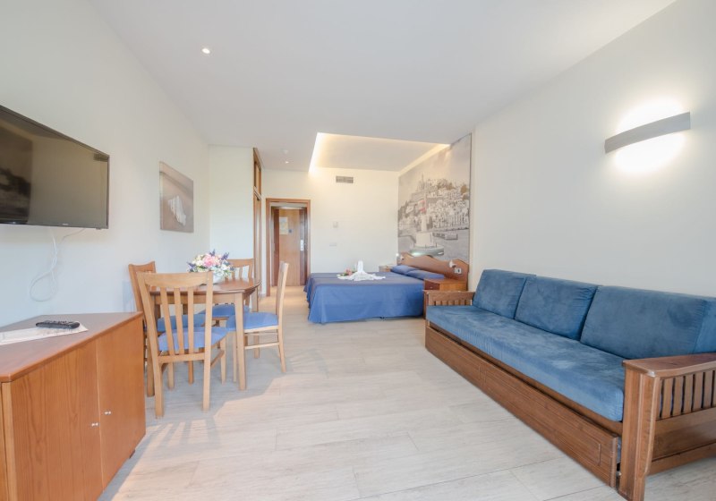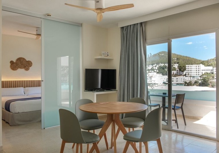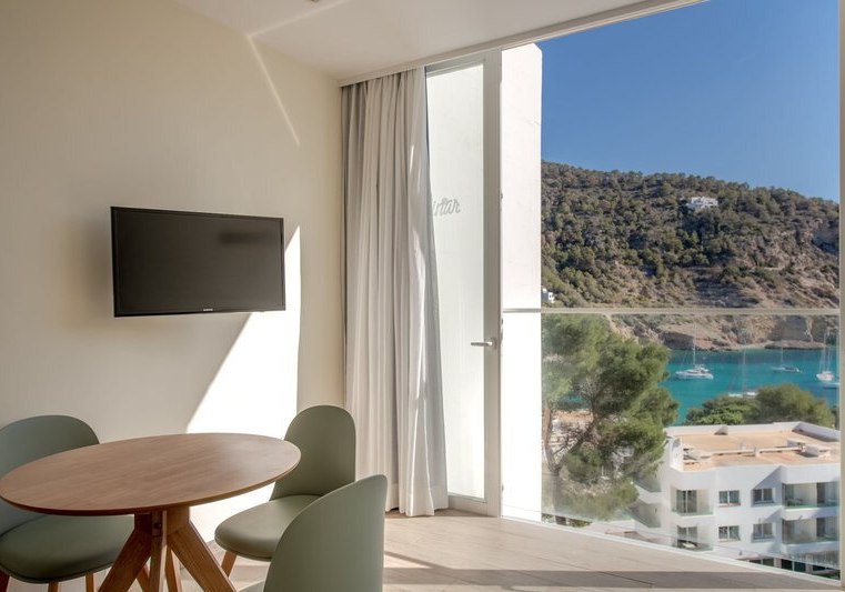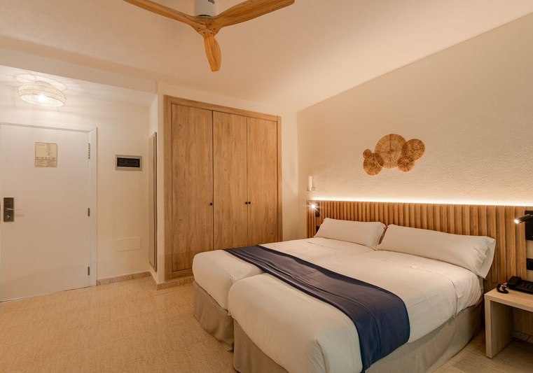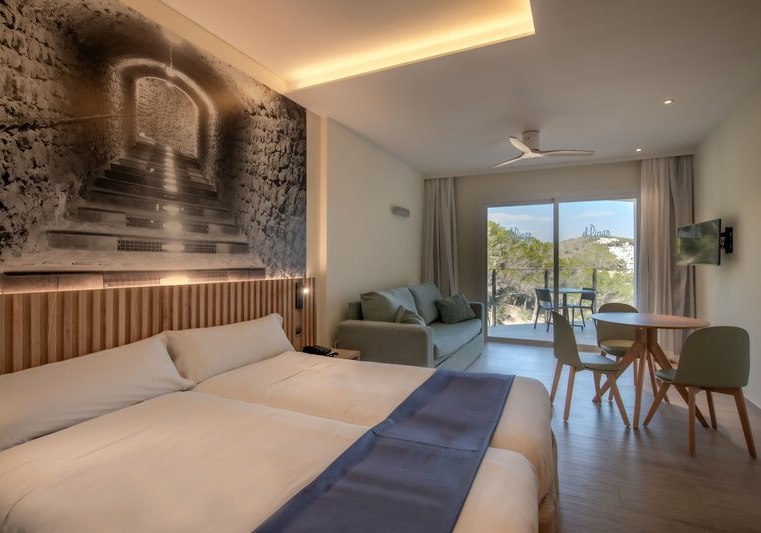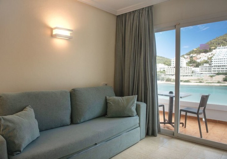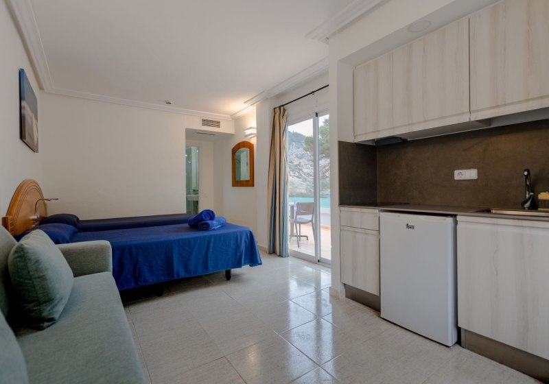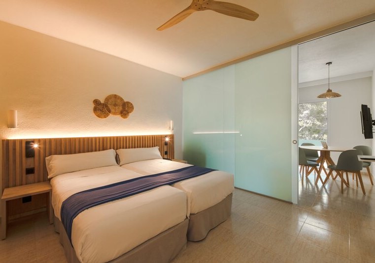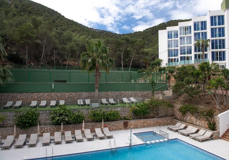 El Pinar empfängt Euch in Cala Llonga auf Ibiza, direkt am Meer gelegen und mit kurzer Distanz zum feinsandigen Strand. Ihr wohnt in einem entspannten Apartmenthotel mit Studios und Appartements, verteilt auf Haupt- und Nebengebäude. Der Stil ist unkompliziert, die Wege sind kurz, und die Gemeinschaftsbereiche wirken klar strukturiert. Highlight: Strandnähe und Apartmentkomfort für flexible Tage am Mittelmeer.