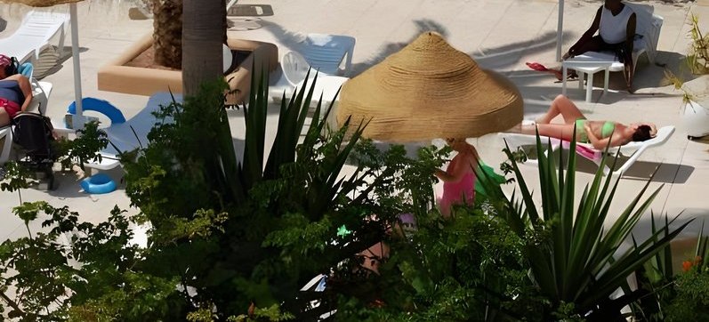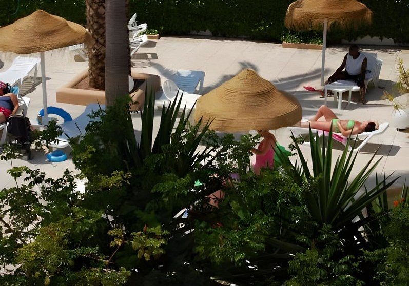 Die öffentlichen Bereiche sind klar gegliedert: Rezeption, Tour-Desk und Gepäckaufbewahrung nehmen Euch an der Schnittstelle von An- und Abreise in Empfang. Aufzüge, WiFi, TV-Raum und eine Terrasse mit Außenmöbeln strukturieren die Wege. Garten, Sonnenterrasse, Liegestühle und Schirme setzen ruhige Akzente rund um den Pool.