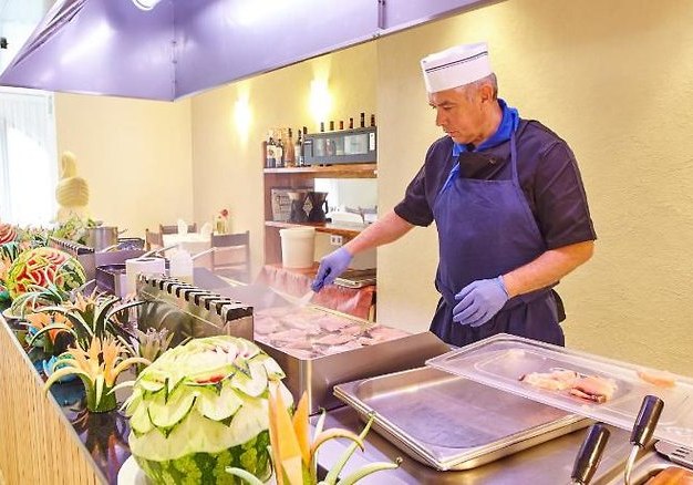 Ihr startet am Frühstücksbuffet und wählt je nach Planung zwischen Halbpension, Abendessen und Snacks. Das Nichtraucher-Restaurant bildet den ruhigen Rahmen, während Bar, Poolbar, Café und Snackbar für flexible Pausen sorgen. Vegetarische Optionen und glutenfreie Mahlzeiten sind vorgesehen und erleichtern die Auswahl.