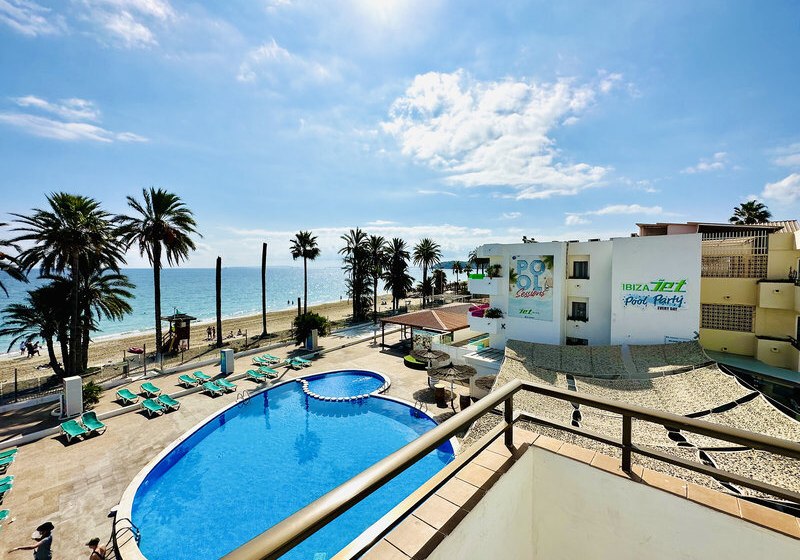 Im Ibiza Jet Apartments wohnt Ihr in einem Apartmenthaus direkt am Sandstrand von Playa d'en Bossa. Die Atmosphäre ist lässig und auf Erwachsene zugeschnitten, mit klarer Struktur und kurzen Wegen zwischen Strand, Pool und den lebendigen Gemeinschaftsbereichen. Ihr startet den Tag mit Meeresbrise auf dem Balkon, plant zwischen Frühstück und Mittag unkompliziert Eure Strandzeit und behaltet Ibiza-Stadt in greifbarer Nähe. Highlight: Adults-only-Apartments direkt am Sandstrand mit unkomplizierter Strandnähe.