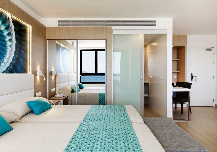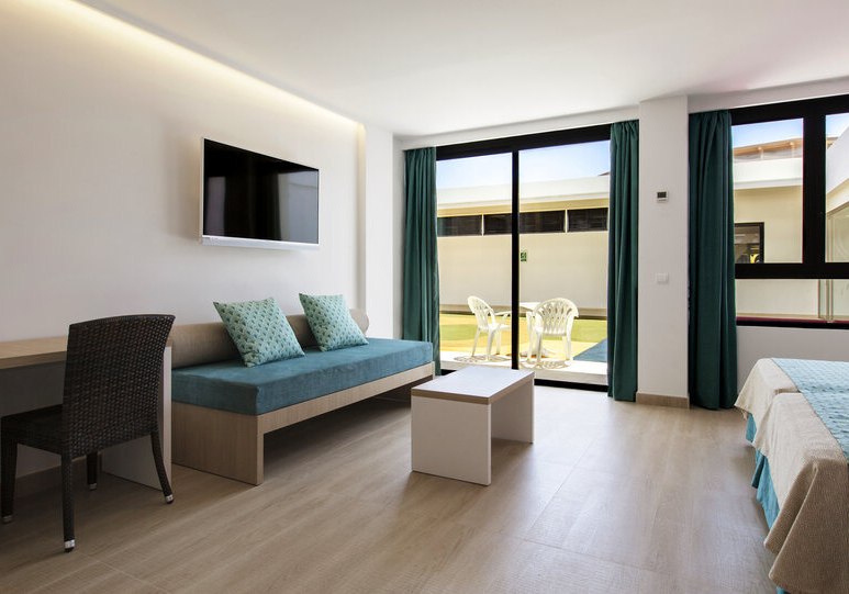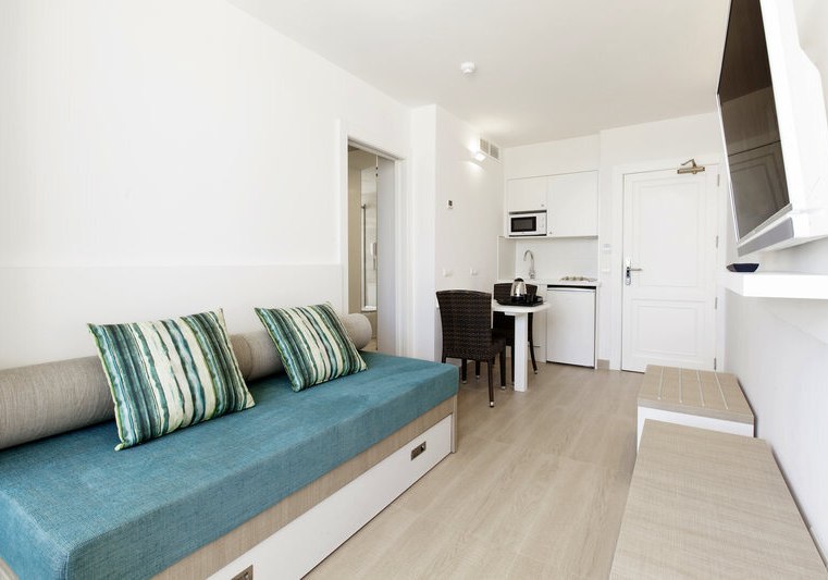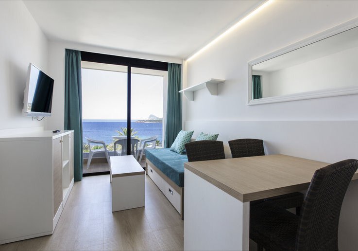 Ihr lebt in Apartments mit Balkon oder Terrasse, zentral gesteuerter Klimaanlage und Details wie Wasserkocher, Flatscreen-Sat-TV und Safe; teils öffnet sich der Blick zum Meer. Vor Ort findet Ihr Restaurant, zwei Bars inklusive Poolbar, Minimarkt und WLAN. Ein Animationsteam bindet Erwachsene und Kinder ein, während der Fahrradverleih Eure Erkundungstouren erleichtert. Das Ergebnis ist ein unkomplizierter Rahmen für eure perfekten Ferien auf Ibiza. Highlight: Apartmenthotel mit Familienfokus und Animation – flexibel, lebhaft, gut verbunden.