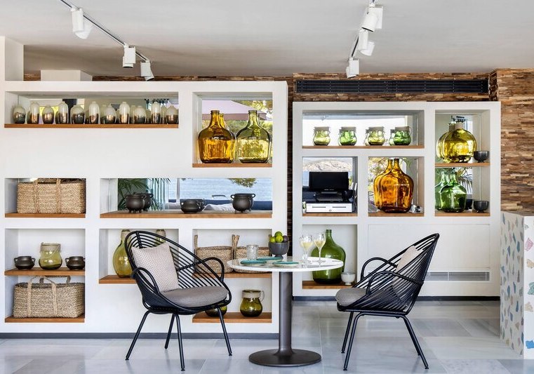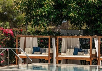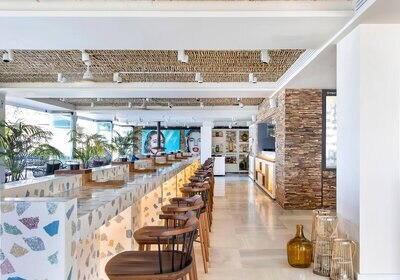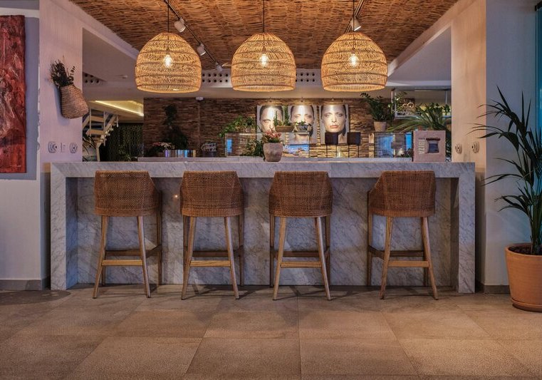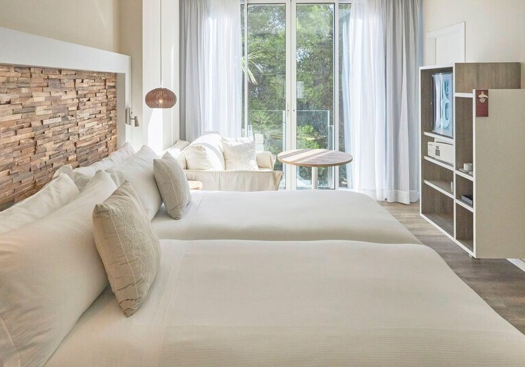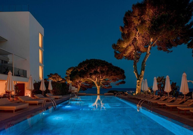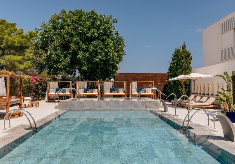 Die Lage verbindet Meernähe mit bequemer Erreichbarkeit: Das Hotel thront oberhalb eines kleinen Sandstrands, die nächste Badebucht erreicht Ihr in etwa fünf Gehminuten. Der Nikki Beach Club liegt nur wenige Gehminuten entfernt, Santa Eulalia etwa vier Kilometer – ideal für Abstecher und entspannte Wege zwischen Strand und Ort.