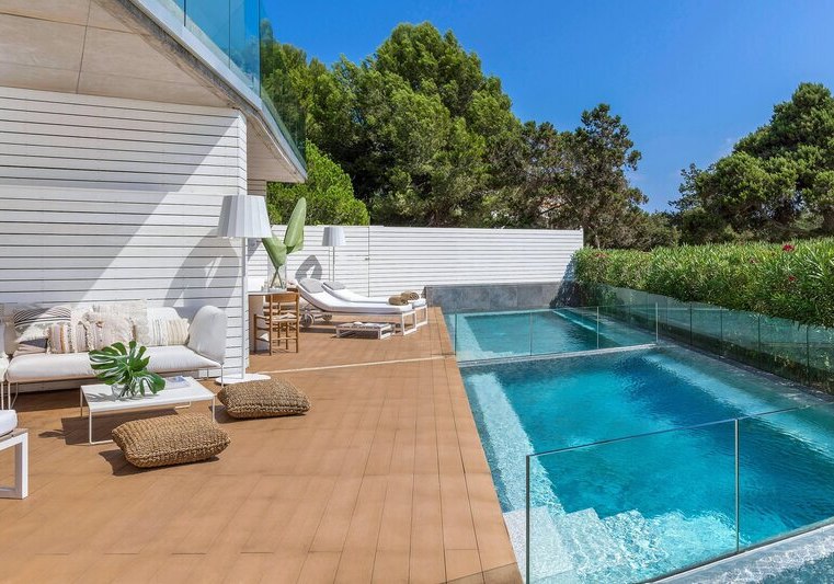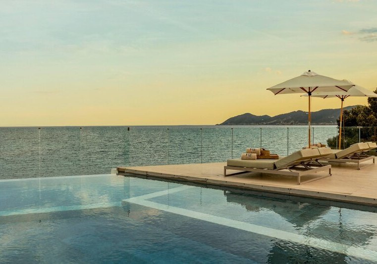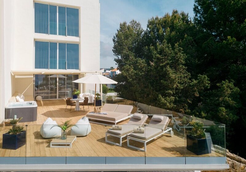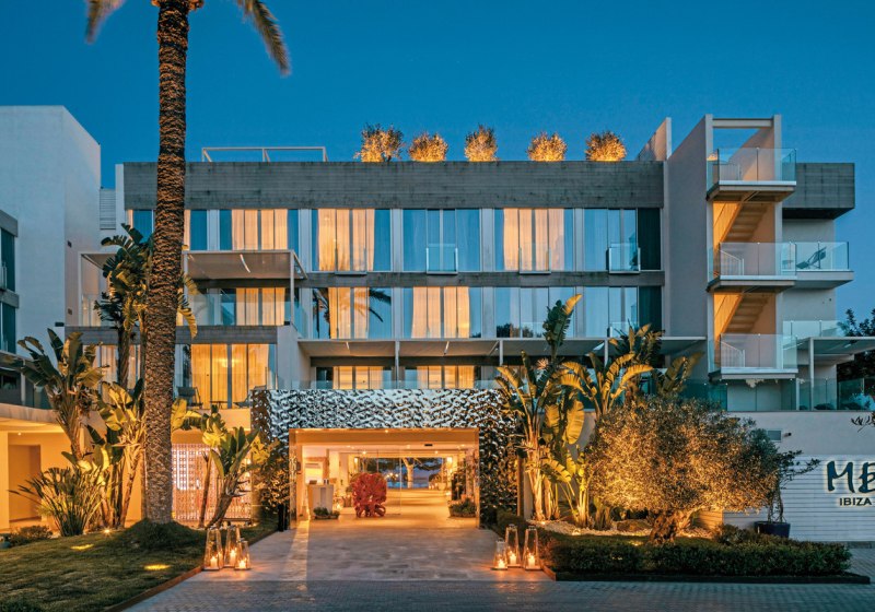 ME Ibiza empfängt Euch direkt am Meer, oberhalb eines kleinen Sandstrands. Die Atmosphäre ist zugleich entspannt und präzise kuratiert: lichtdurchflutete Flächen, Dachterrasse mit Chill-out-Zone und ausgewählte Rückzugsorte mit Bali-Betten. Als Mitglied von The Leading Hotels of the World und mit 5 Landessternen setzt das Haus auf klare Formen und aufmerksamen Service.