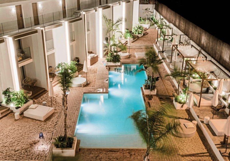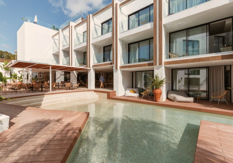Das Nativo Hotel Ibiza verbindet Ruhe, Struktur und Nähe: drei Pools inklusive beheizter Option, ein Adults-only-Dachpool, ein klar geführtes Restaurant mit stark bewerteter Küche und eine Rooftop-Bar für den abendlichen Abschluss. Strand und Ortszentrum erreicht Ihr bequem zu Fuss.