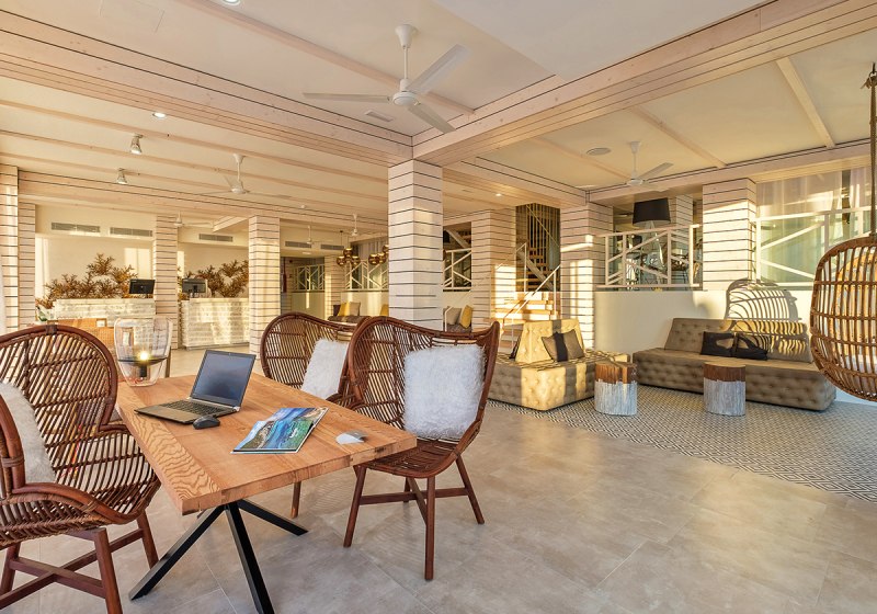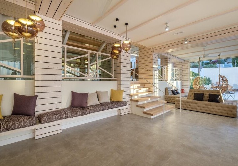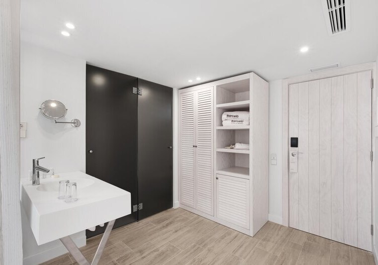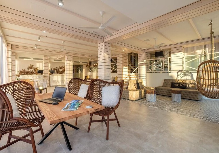 Im Barceló Portinatx - Adults Only wohnt Ihr in einem Erwachsenenhotel, das bewusst Ruhe und Klarheit betont. Die Anlage gehört zur Barceló‑Gruppe und kombiniert zurückhaltendes Design mit durchdachten Services. Offene Lounges, eine gepflegte Gartenanlage und verschiedene Terrassen schaffen Raum, um anzukommen, durchzuatmen und den Tag strukturiert zu planen. Hier richtet Ihr Euch am Pool mit Handtüchern gegen Kaution ein, verbindet Euch überall mit dem kostenfreien WLAN und nutzt die kurzen Wege zwischen Rezeption, Bars und Gesellschaftsbereichen.