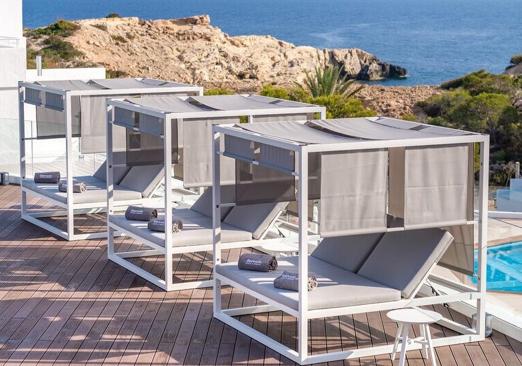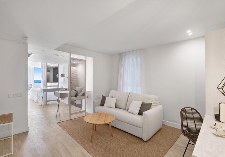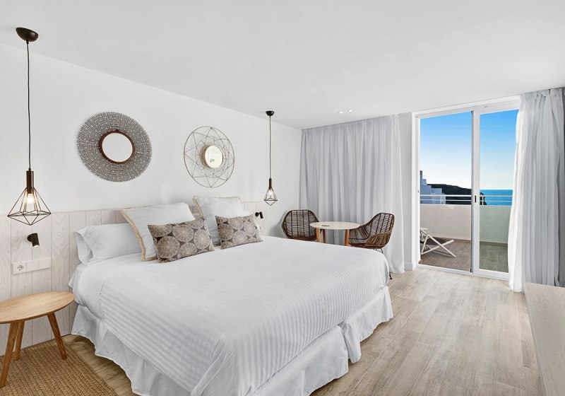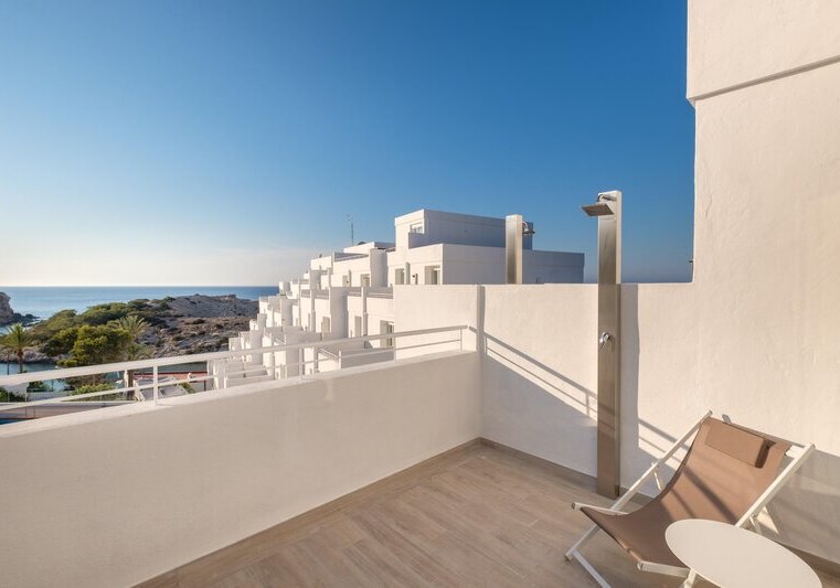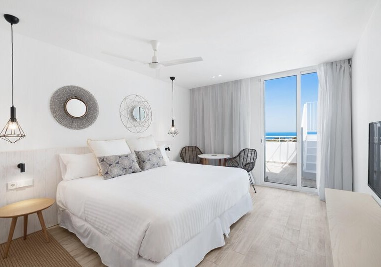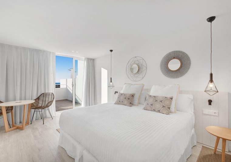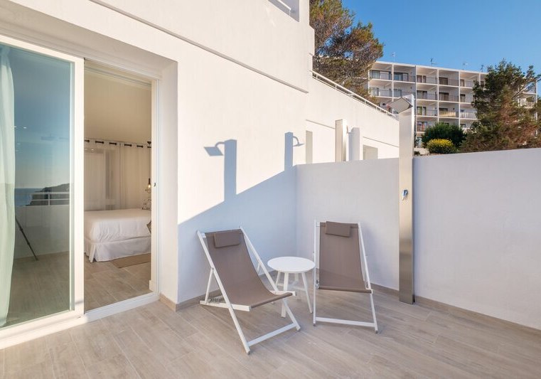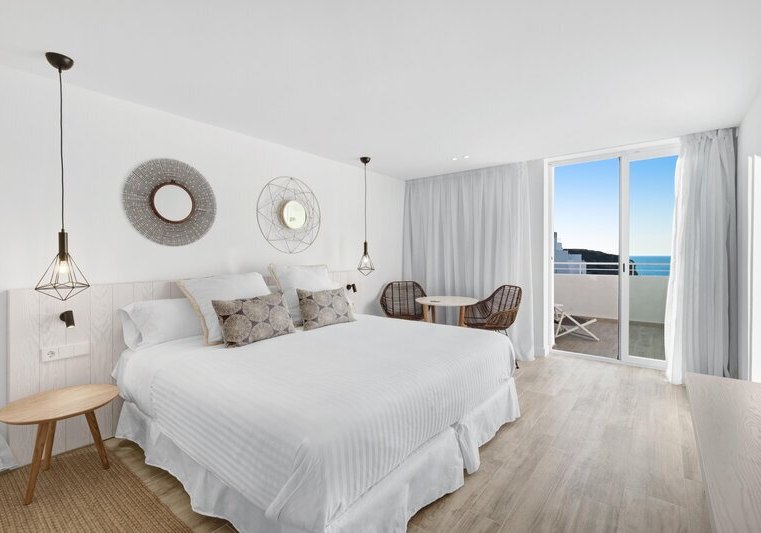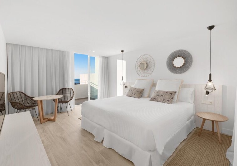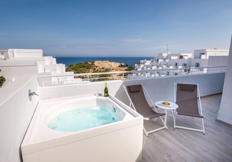 Weitere Ausstattungsmerkmale wie Bademantel, Pflegeartikel, Kaffee‑/Teezubereiter oder verschiedene Bettentypen unterstreichen den Komfort. Einige Einheiten sind als Studios oder Apartments angelegt, was zusätzlichen Raum und Flexibilität schafft. So richtet Ihr Euch genau so ein, wie Ihr es für Eure Tage auf Ibiza braucht. Highlight: Balkone mit Whirlpool in ausgewählten Kategorien.