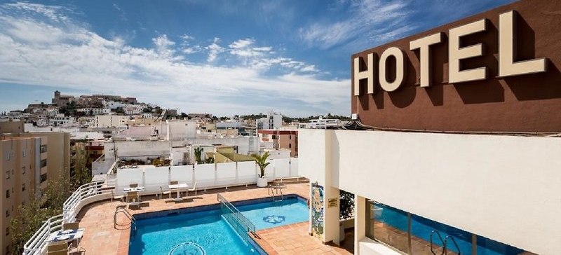 Die Gemeinschaftsbereiche wirken aufgeräumt und zweckmässig, vom Foyer bis zur Sonnenterrasse. Auf sechs Etagen erwarten Euch 117 Wohneinheiten, komfortabel ausgestattet und auf Paare, Business-Reisende und City-Entdecker zugeschnitten. Ihr startet mit einem Kaffee im Café, nehmt abends die Poolbar oder Bar, und plant am Tour-Desk Eure Wege durch Eivissa.